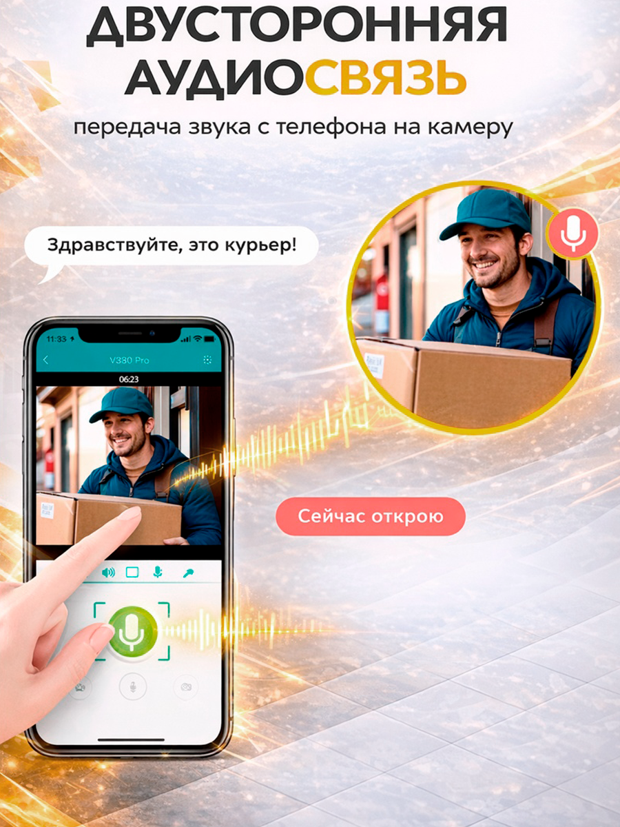 Простое подключение через мобильное приложение V380 Pro превращает управление камерой в настоящее удовольствие. Всего пара кликов — и вы на связи со своим домом: смотрите онлайн-трансляцию, настраивайте параметры, управляйте сигнализацией и будьте в курсе всего, что происходит на вашей территории
