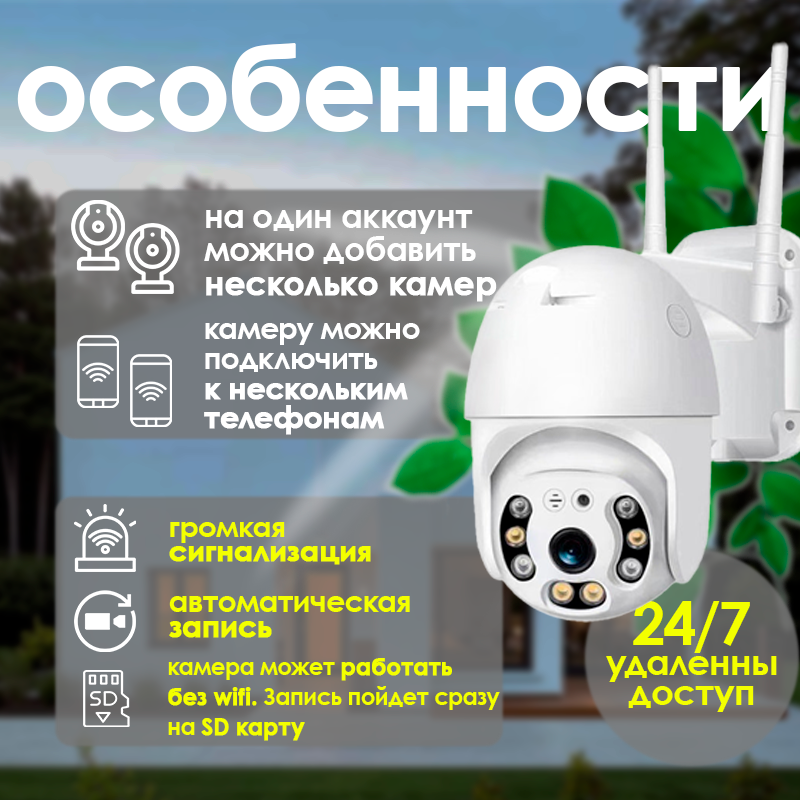 Современная уличная камера видеонаблюдения WiFi с разрешением FullHD и множеством полезных функций обеспечит безопасность вашего дома, офиса или другого объекта. Высокое разрешение 1920x1080 гарантирует детализированное изображение, позволяя рассмотреть каждую мелочь, от номерных знаков до небольших движений. Камера оснащена датчиком движения, который автоматически активирует запись при обнаружении активности, экономя место на встроенной SD-карте на 64 ГБ, избавляя от необходимости подключения к облачным хранилищам. Благодаря ночному видению, устройство сохраняет четкость изображения даже в полной темноте, что делает её незаменимой для круглосуточного наблюдения.
