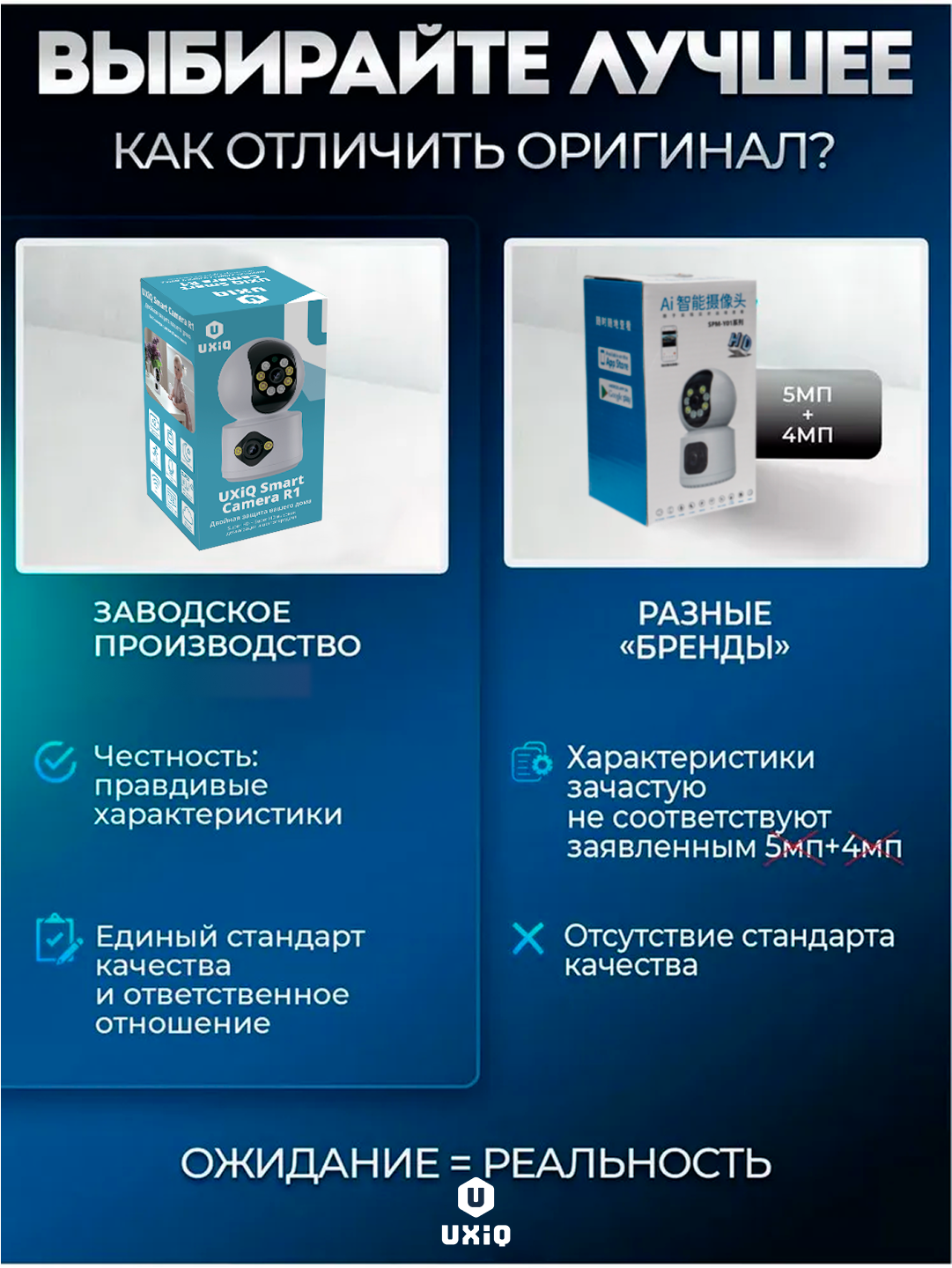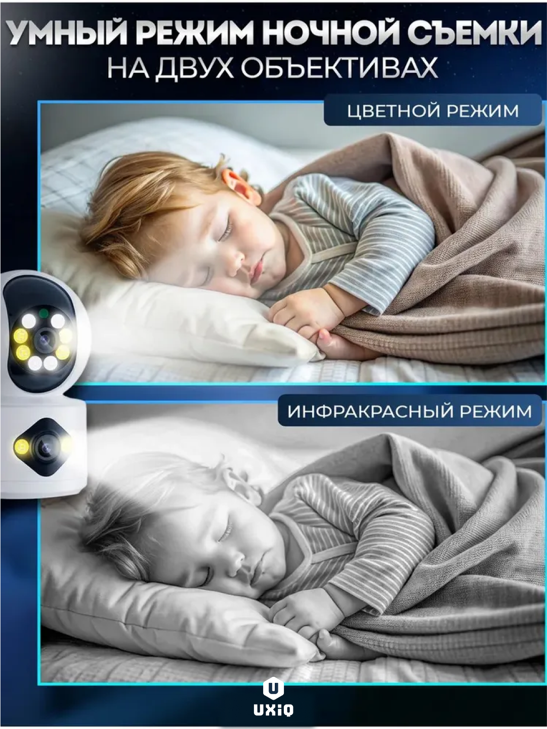 Камера видеонаблюдения WiFi для дома, ip видеоняня UXiQ Smart Сamera R1 P7-6MP для дома, двухобъективная с ночным видением и датчиком движения: сравнение цен, характеристики, фото, актуальное наличие и цены.