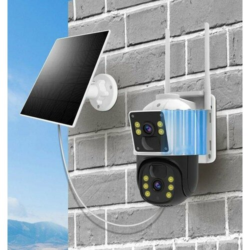Уличная , двойная, беспроводная, поворотная камера видеонаблюдения с сим картой (симкой) 4G , на аккумуляторах с солнечной панелью .