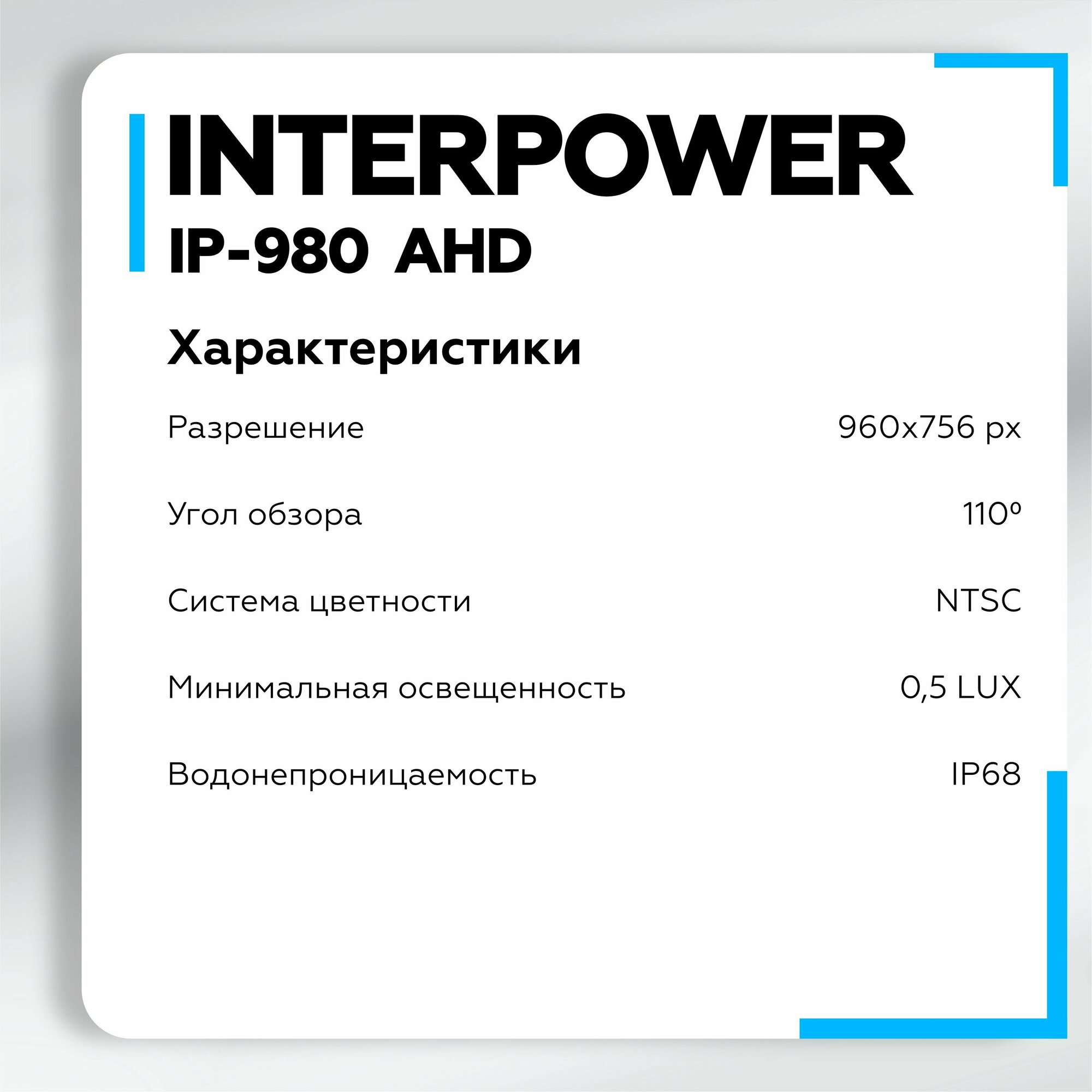 Камера заднего вида Interpower IP-980 AHD: сравнение цен, характеристики, фото, актуальное наличие и цены.