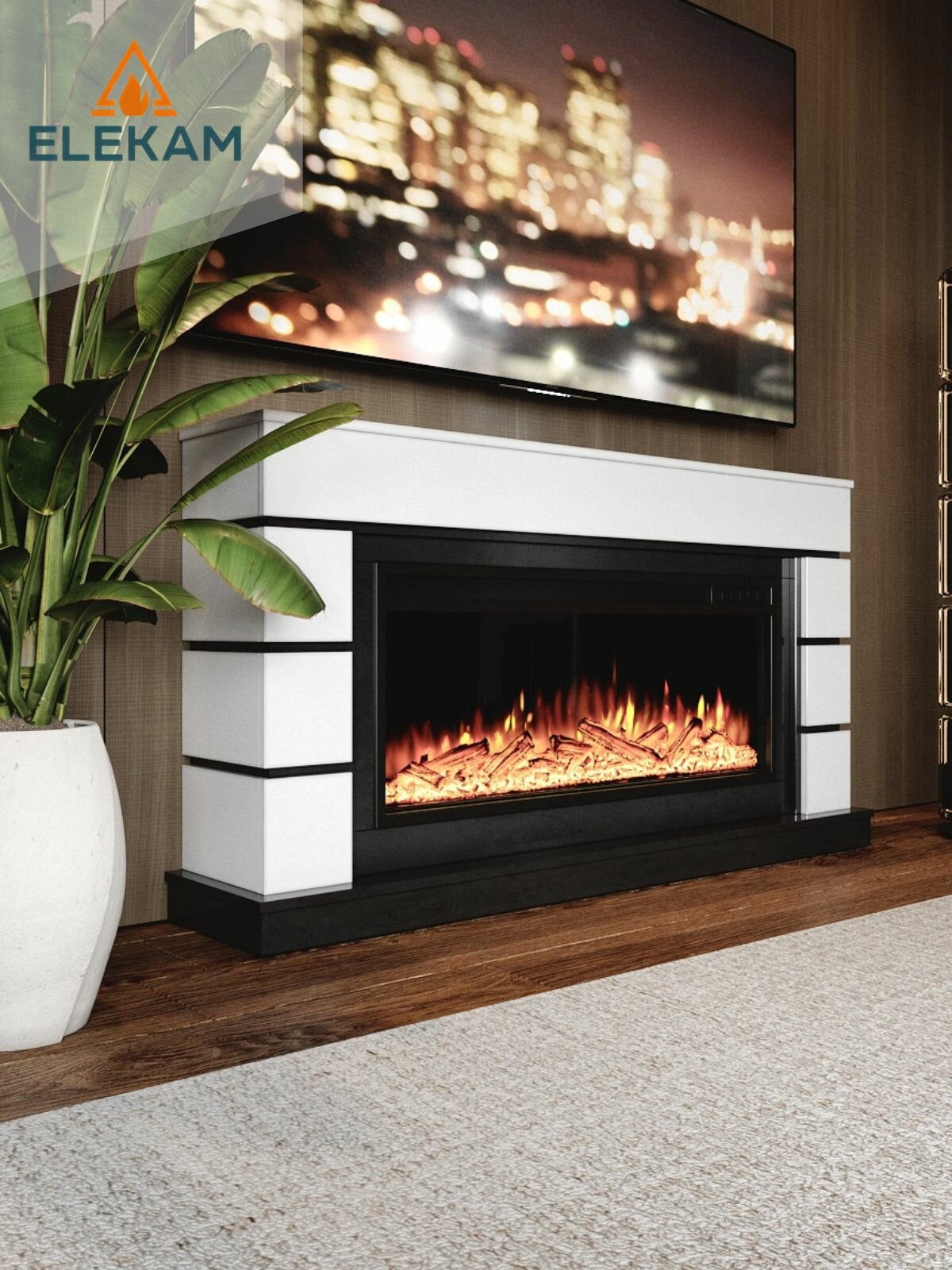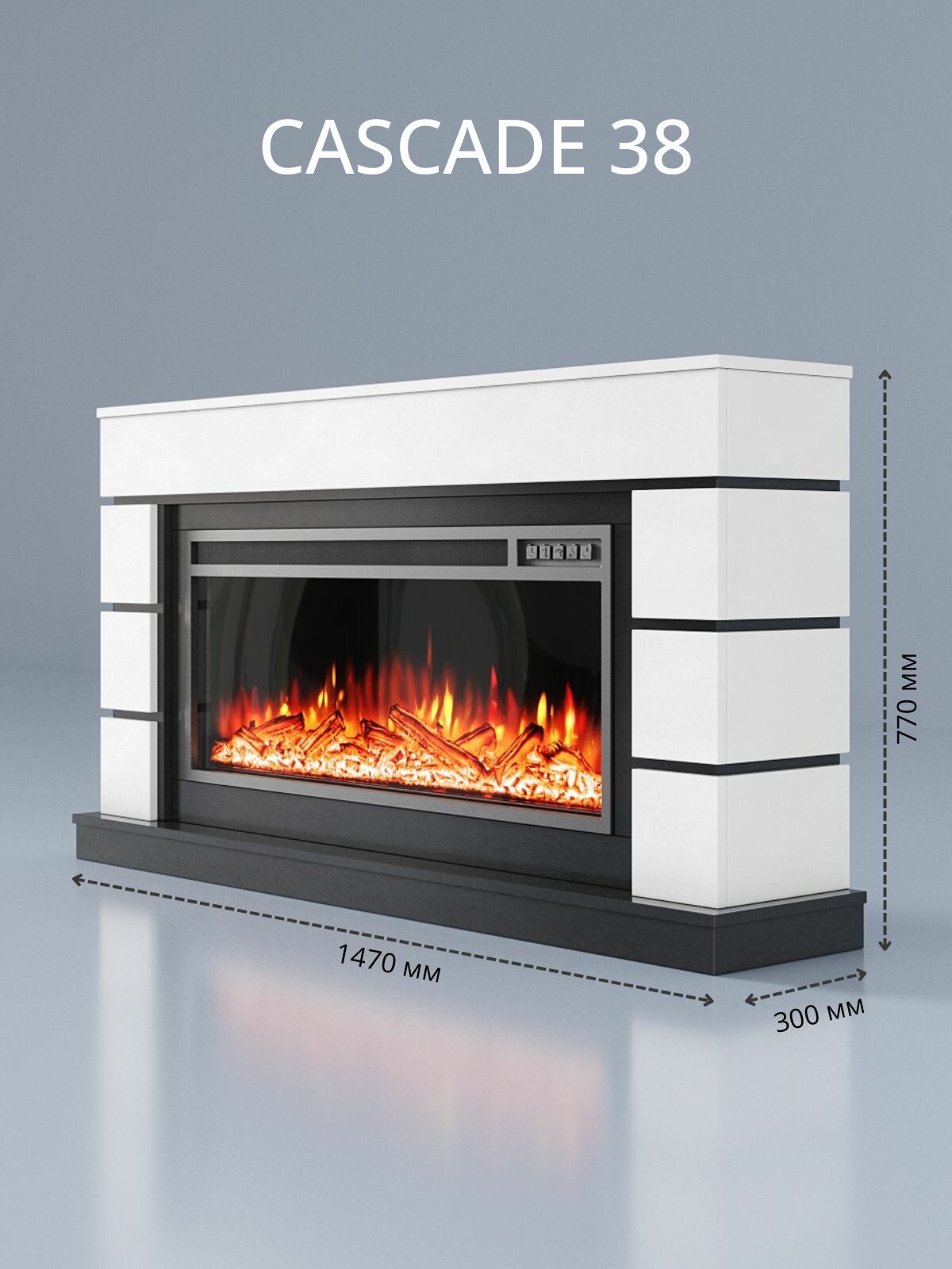 Купить Камин электрический ELEKAM CASCADE 38 напольный с очагом и порталом, с пультом, обогревом и имитацией огня (Электрокамин) с доставкой по всей России.