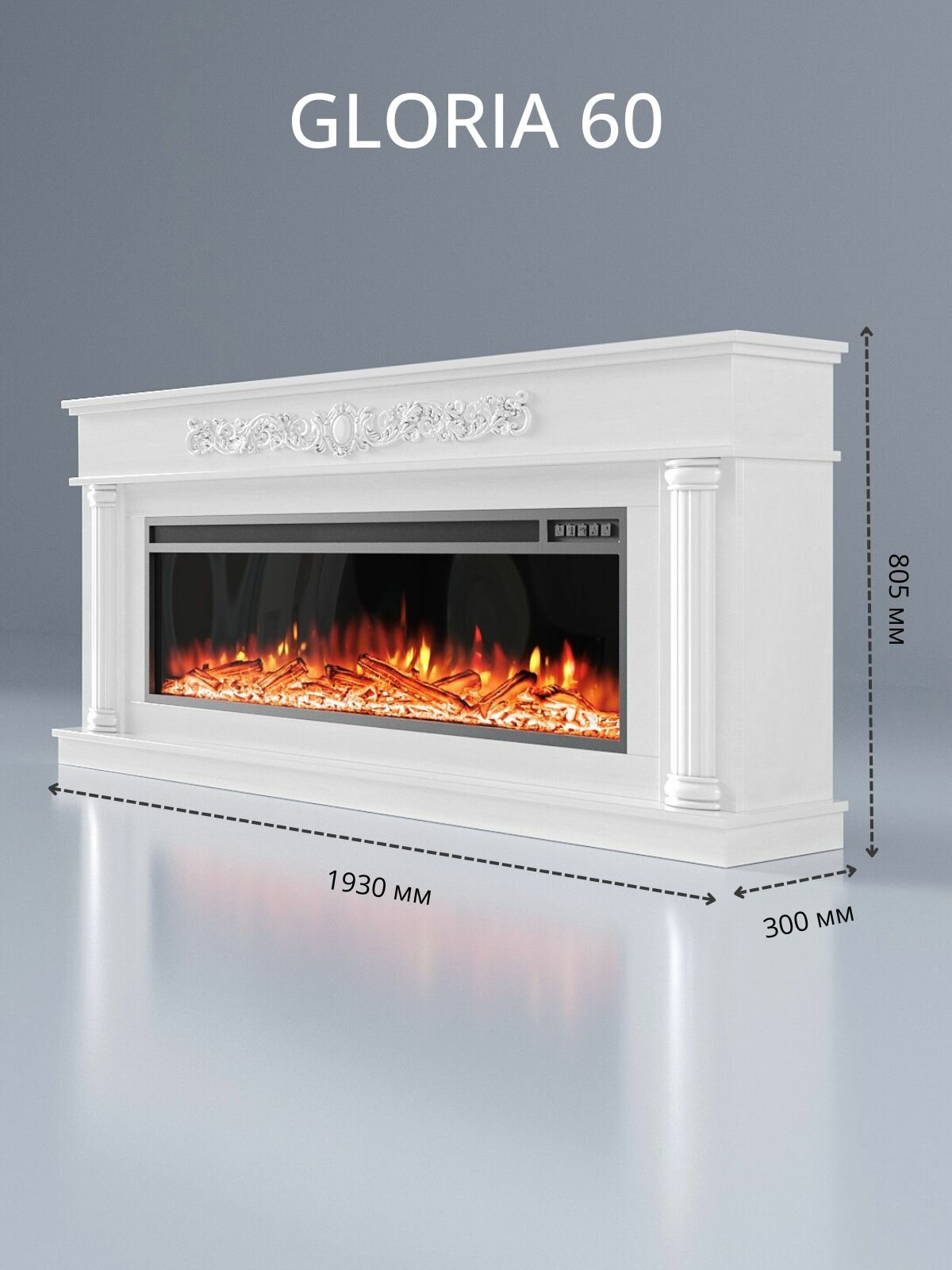 Купить Камин электрический ELEKAM Gloria 60 напольный с очагом и порталом, с пультом, обогревом и имитацией огня (Электрокамин) с доставкой по всей России.