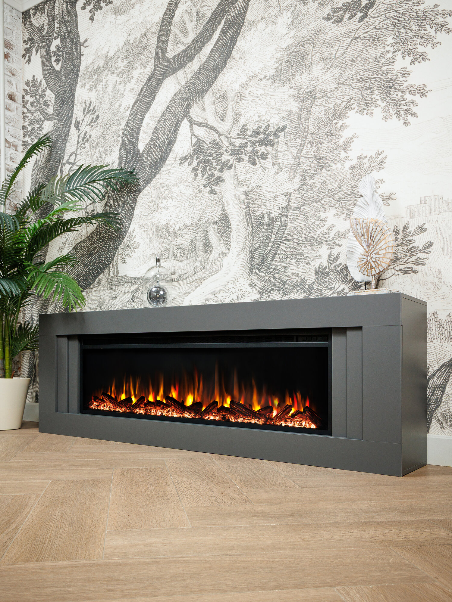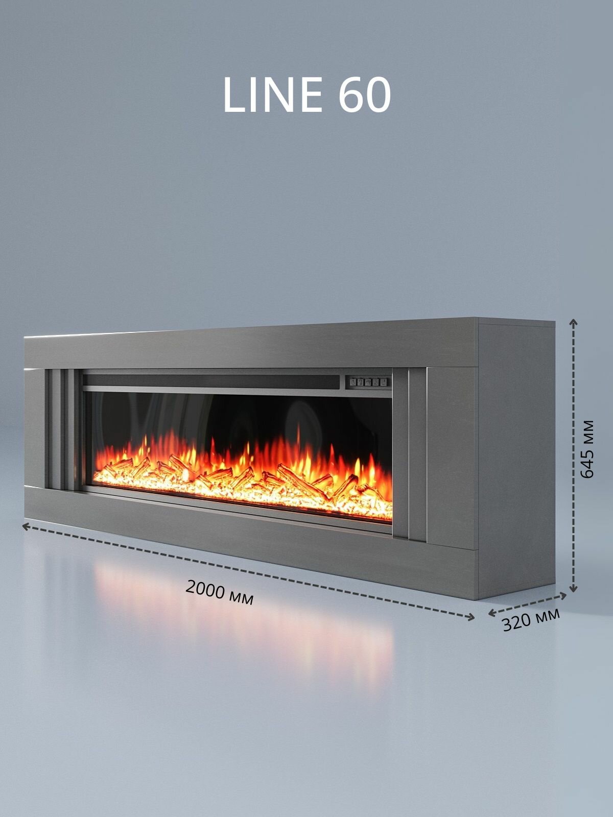 Камин электрический ELEKAM Line 60 напольный с порталом и очагом, с обогревом, звуком потрескивания дров и имитацией огня (Электрокамин)
