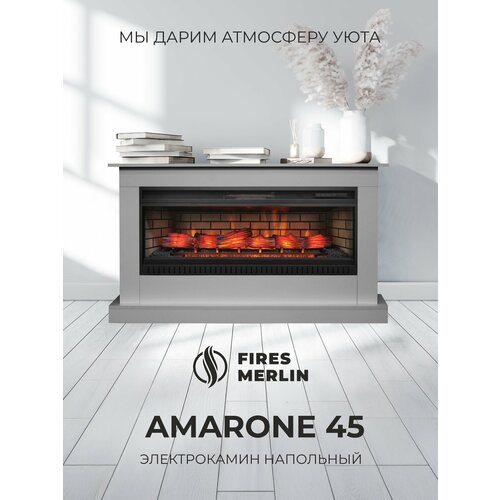 Купить Камин электрический Fires Merlin Amarone GR серый c очагом Jack 45, электрокамин с обогревом напольный с доставкой по всей России.