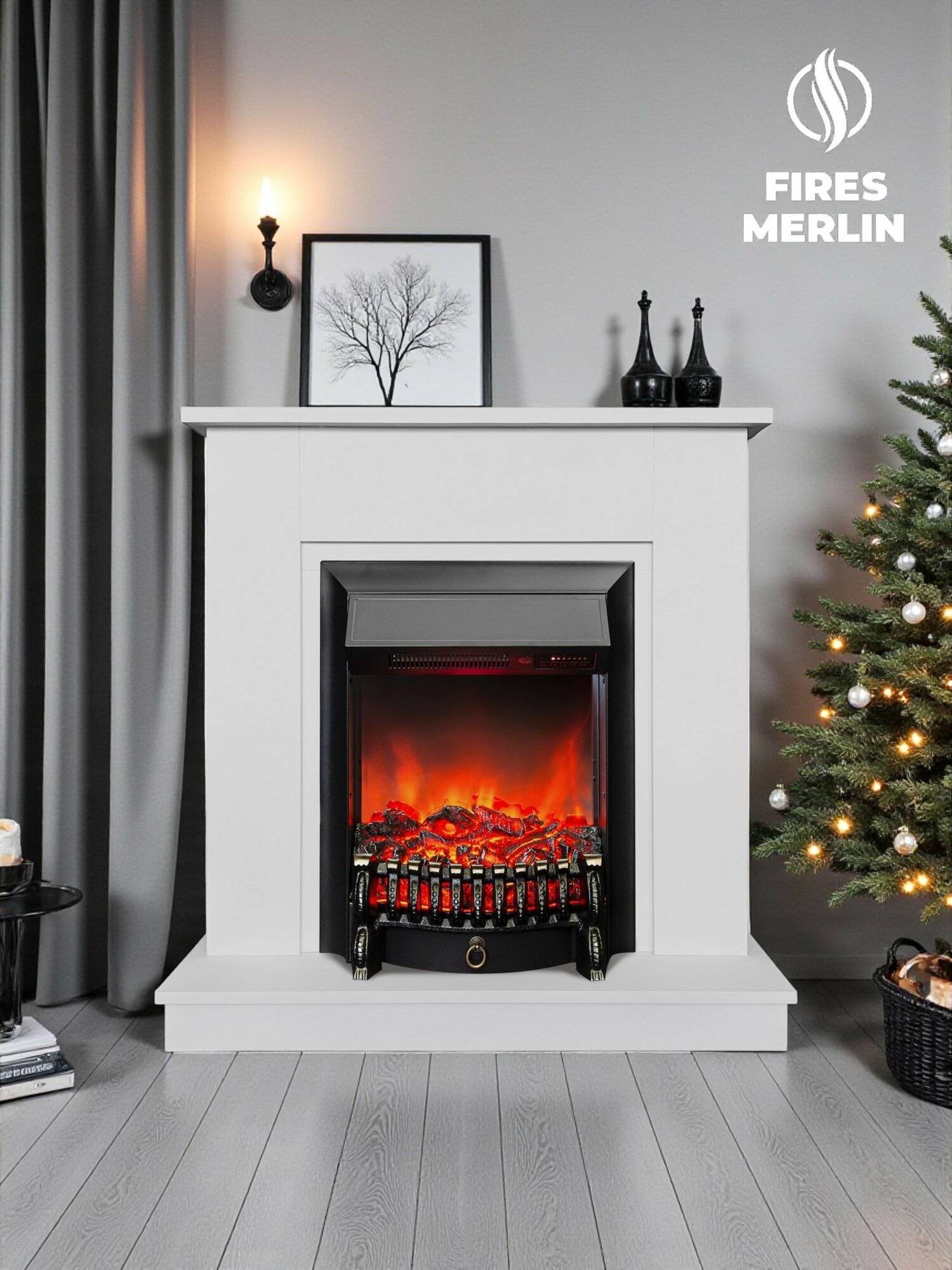 Купить Камин электрический Fires Merlin Флора WT белый с очагом, пульт ДУ, с обогревом, напольный с доставкой по всей России.