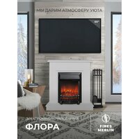 Камин электрический Fires Merlin Флора WT белый с очагом, пульт ДУ, с обогревом, напольный: сравнение цен, характеристики, фото, актуальное наличие и цены.