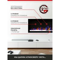 Электрический камин Fires Merlin Jacarta 60: стильный акцент и источник теплаЭлегантный дизайн и сенсорная панель управленияЭлектрический камин Fires Merlin Jacarta 60 отличается элегантным дизайном и сенсорной панелью управления. Черный матовый корпус из стали и темно-серая топка придают камину стильный и современный вид. Регулировка яркости пламени и уровня обогреваКамин оснащен функцией регулировки яркости пламени и уровня обогрева. Вы с легкостью сможете создать атмосферу настоящего камина без необходимости монтажа абажуров или дымоходов. камин станет отличным источником тепла в холодные зимние вечера, обеспечивая комфорт и уют в любой комнате. Подходит для различных интерьеровКамин Fires Merlin Jacarta 60 прекрасно сочетается с различными стилями декора, придавая помещению особый шарм. Он подходит как для классических, так и для современных интерьеров и может быть размещен в гостиной, спальне или даже на даче. Безопасность и простота использованияКамин работает без выделения и запаха дыма, делая его безопасным для использования в помещениях. Наслаждайтесь эффектом живого огня и уютной атмосферой, не выходя из дома. Напряжение: 220В Материал корпуса: сталь Вес: 18.0 кг Тип: камин Установка: напольная Материал топки: сталь Цвет для фильтра: черный матовый Цвет для фильтра: темно-серый Название цвета от производителя: черный матовый, темно-серый Высота: 43.0 см Глубина: 15.0 см Ширина: 152.4 см Особенности: дистанционное управление Особенности: Звуковой эффект Особенности: Таймер Комплектация: инструкция Комплектация: Камин электрический Комплектация: пульт ДУ Функции: имитация пламени
