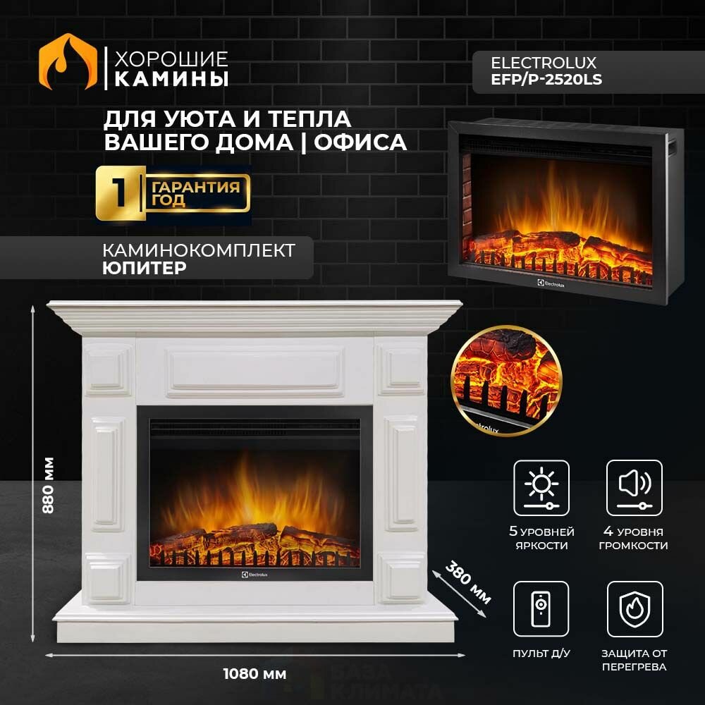 Купить Камин электрический хорошие камины Юпитер белый с очагом EFP/P-2520LS, с пультом, обогревом и звуком потрескивания дров с доставкой по всей России. Камин электрический хорошие камины Юпитер белый с очагом EFP/P-2520LS, с пультом, обогревом и звуком потрескивания дров: сравнение цен, характеристики, фото, актуальное наличие и цены.
