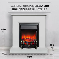 Камин электрический Majestic с белым порталом VITAMIN и пультом ДУ 67х26х79