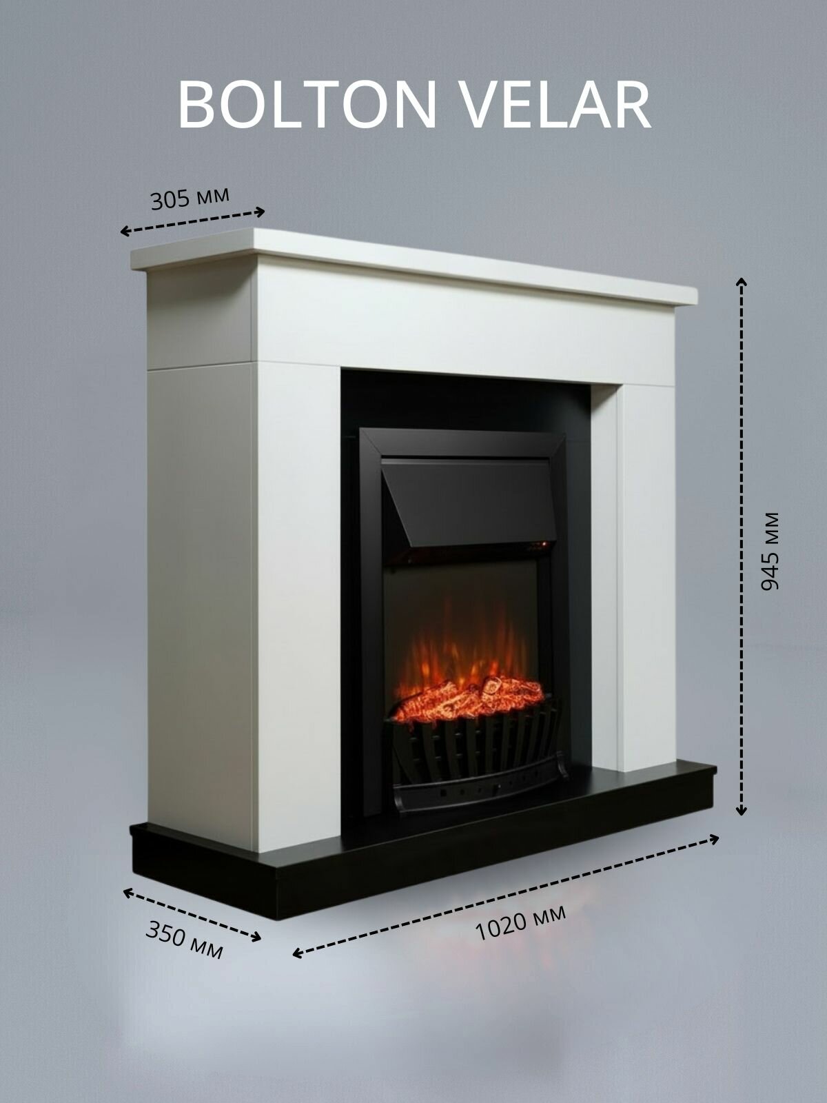 Камин электрический напольный ELEKAM Bolton Velar с очагом и порталом, с пультом, обогревом и имитацией огня (Электрокамин): сравнение цен, характеристики, фото, актуальное наличие и цены.