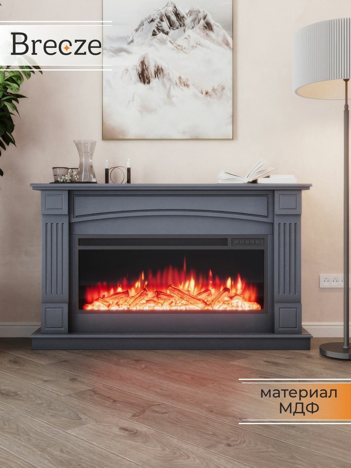 Камин электрический напольный ELEKAM BOSTON 38 с очагом и порталом, с пультом, обогревом и имитацией огня (Электрокамин)