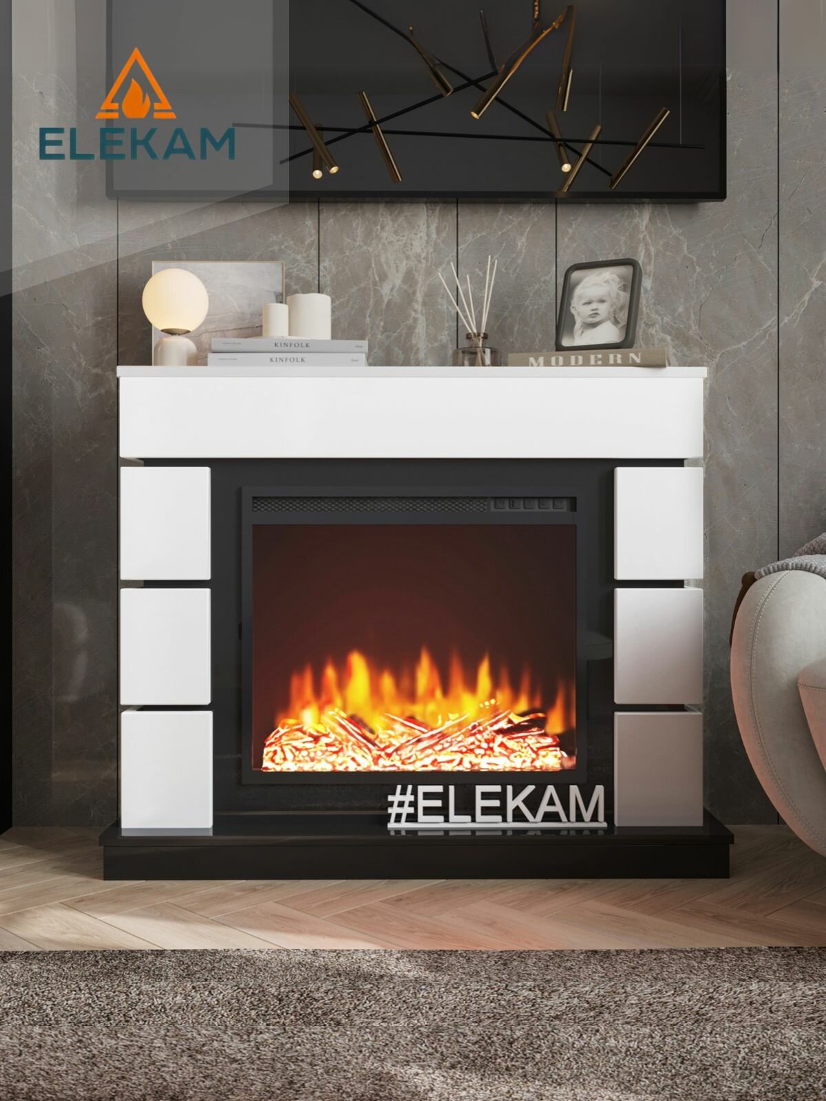 Купить Камин электрический напольный ELEKAM CASCADE 23 с очагом и порталом, с пультом, обогревом и имитацией огня (Электрокамин) с доставкой по всей России.