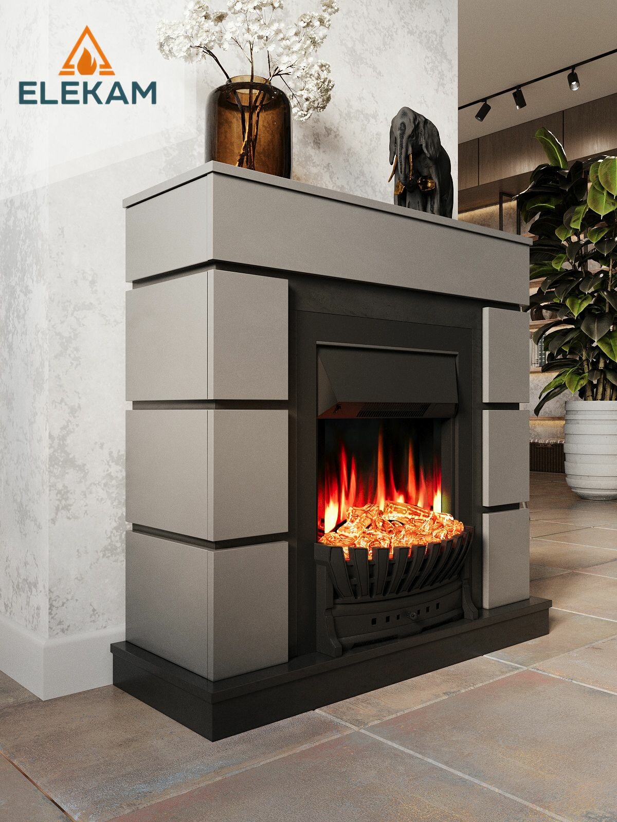 Купить Камин электрический напольный ELEKAM CASCADE с порталом, очагом с пультом, обогревом и звуком потрескивания дров с доставкой по всей России.