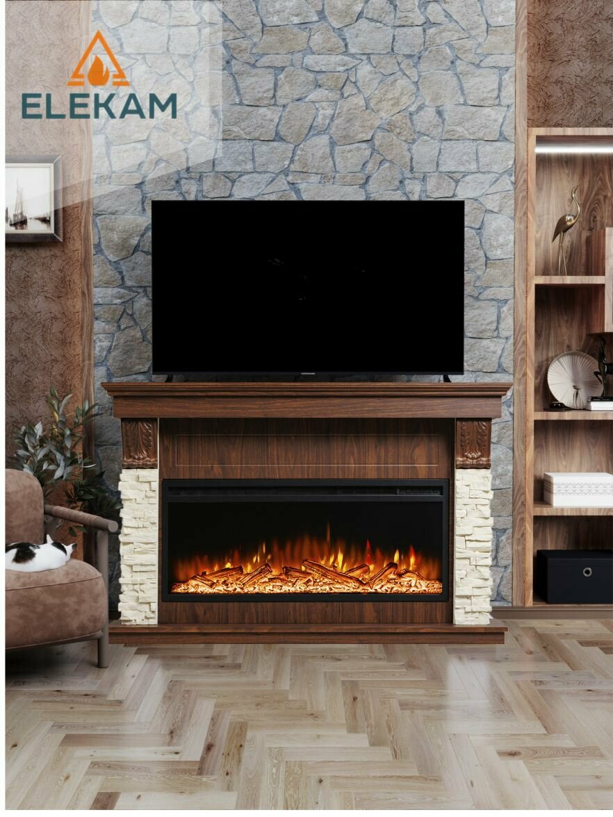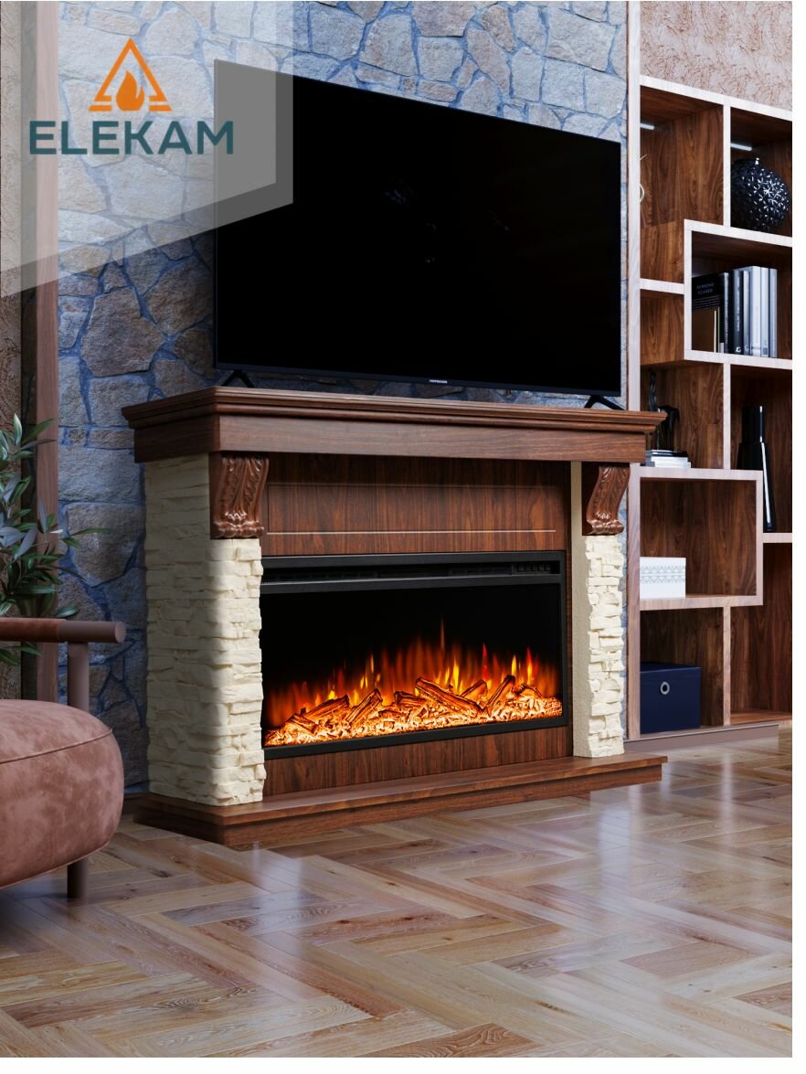 Купить Камин электрический напольный ELEKAM DENVER 38 с очагом и порталом, с пультом, обогревом и имитацией огня (Электрокамин) с доставкой по всей России.