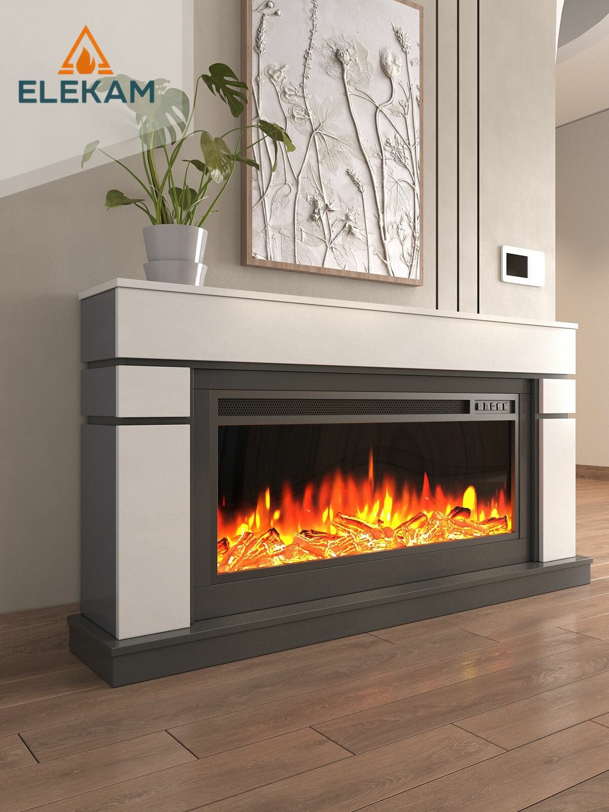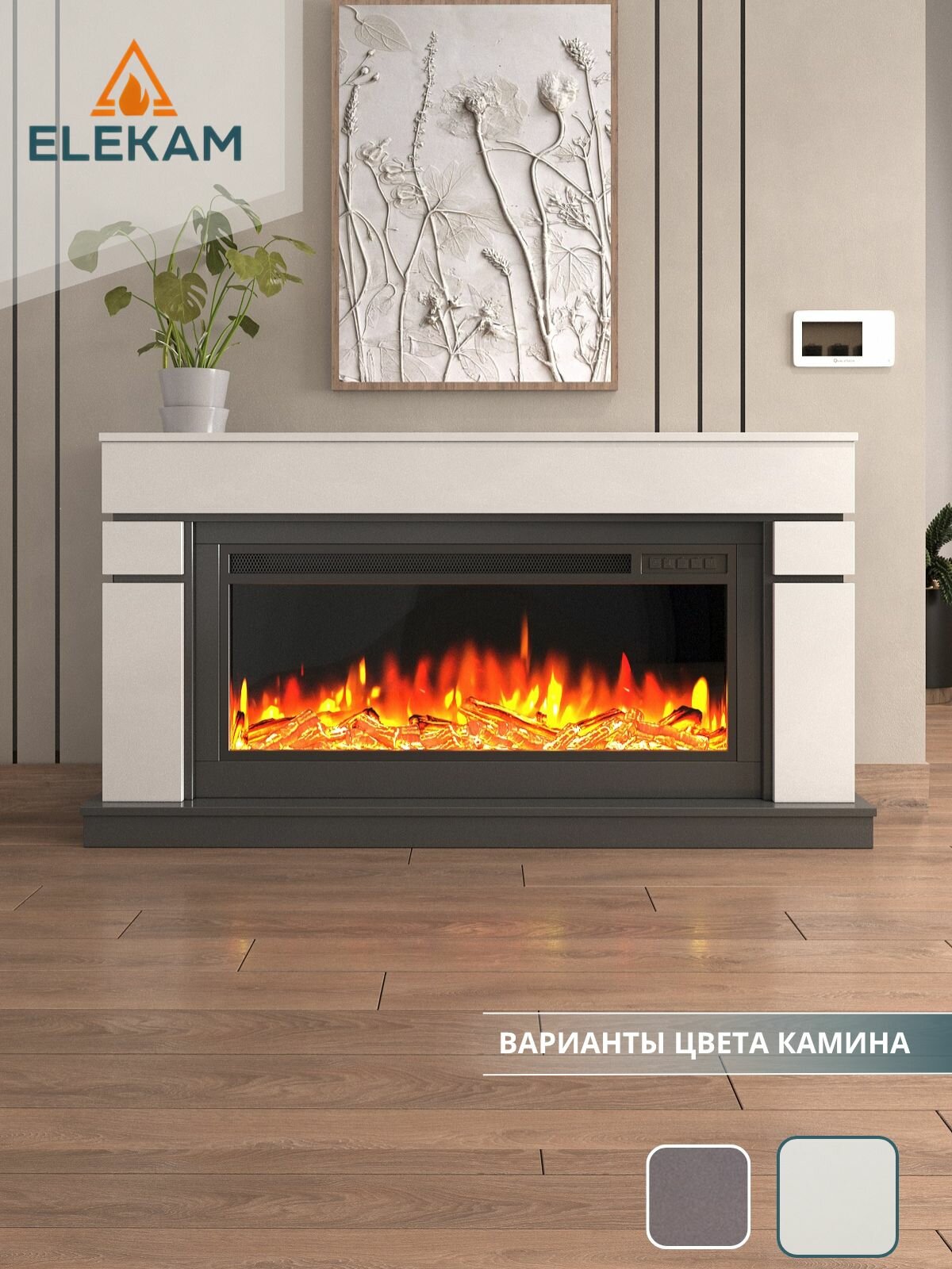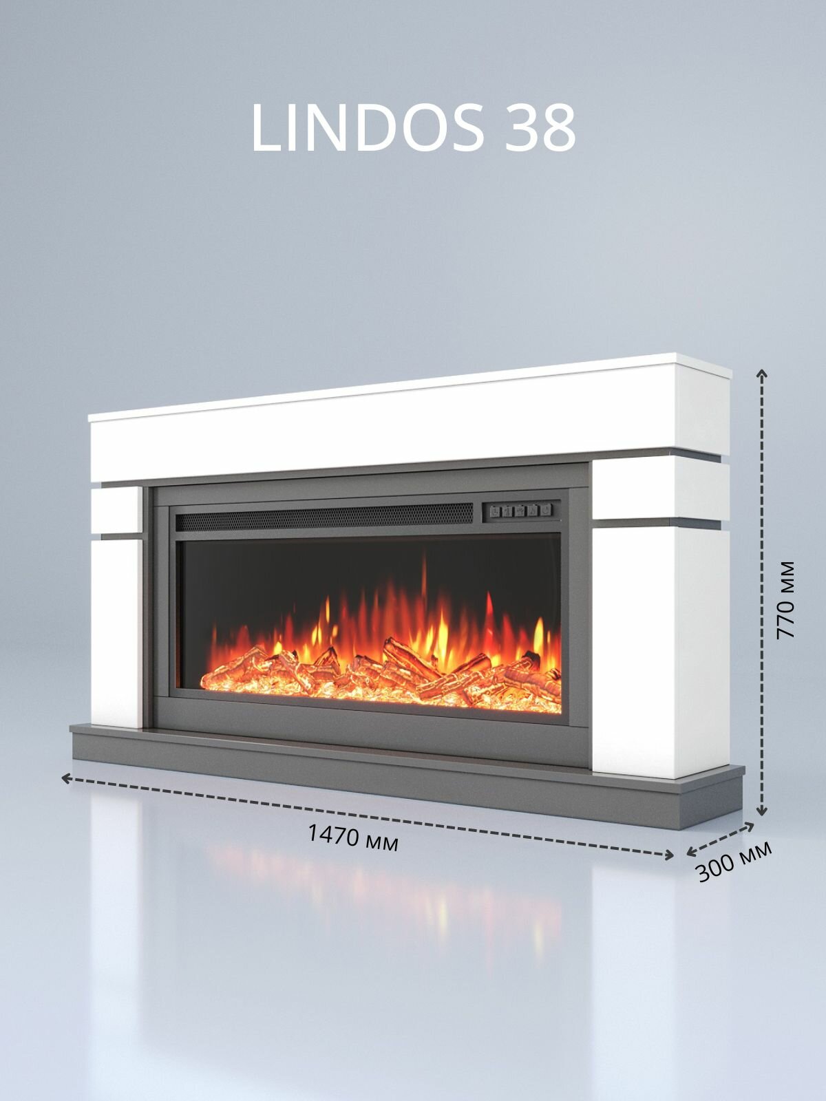 Купить Камин электрический напольный ELEKAM Lindos 38 с очагом и порталом, с пультом, обогревом и имитацией огня (Электрокамин) с доставкой по всей России.