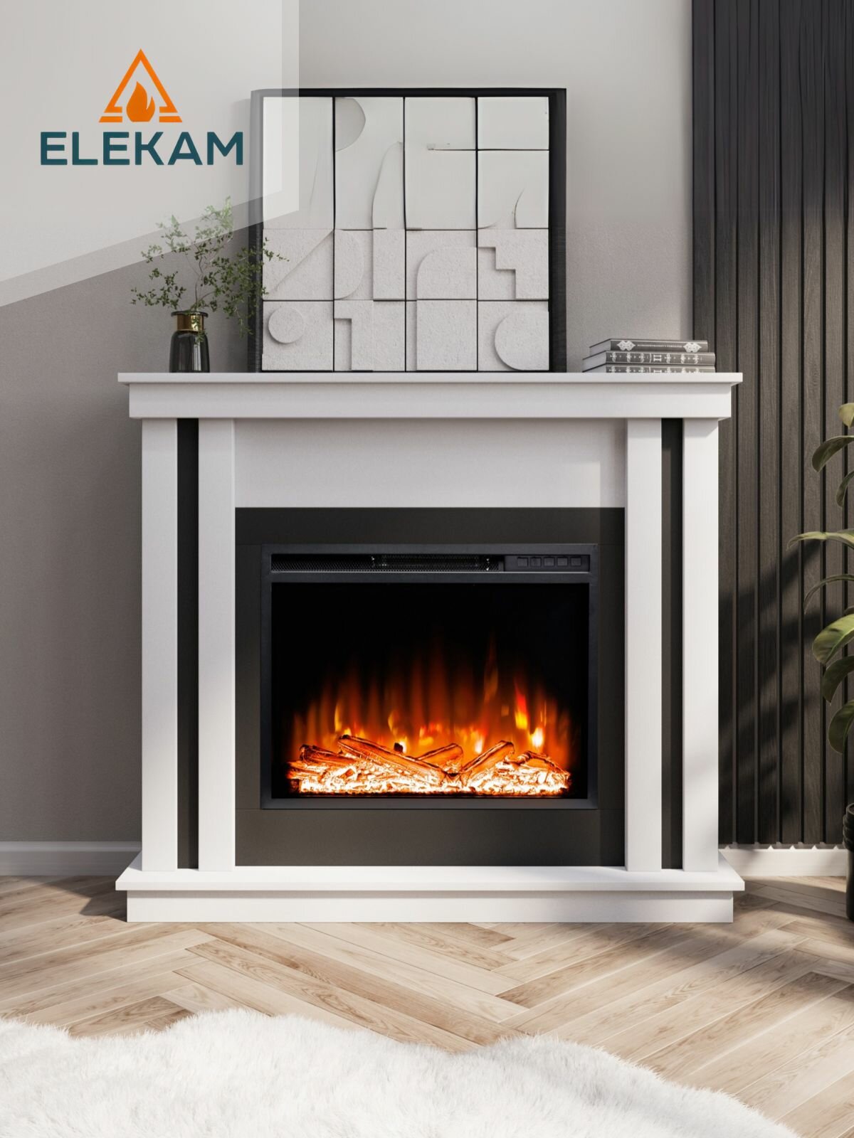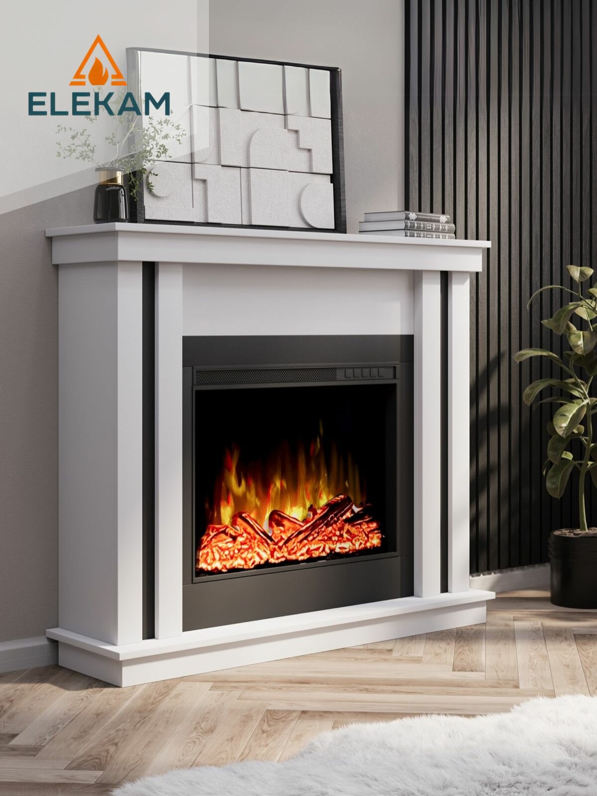 Купить Камин электрический напольный ELEKAM NEO 23 с очагом и порталом, с пультом, обогревом и имитацией огня (Электрокамин) с доставкой по всей России.