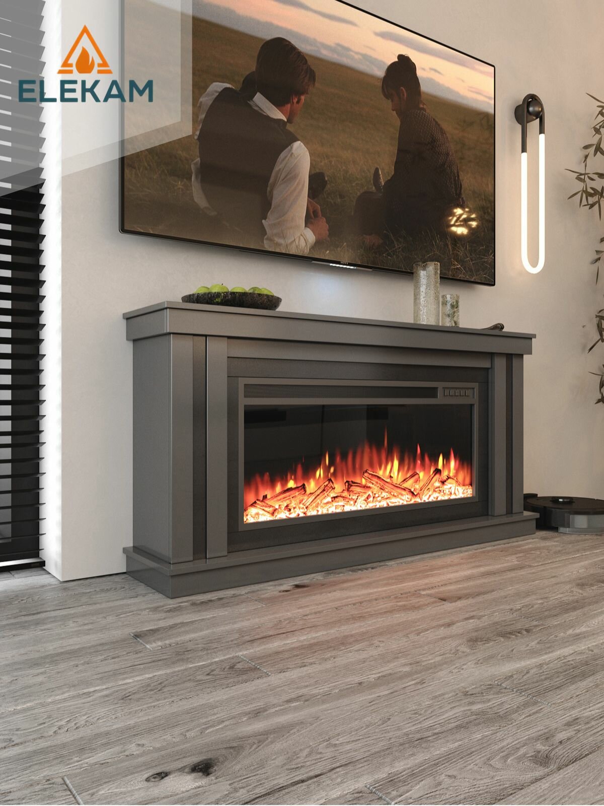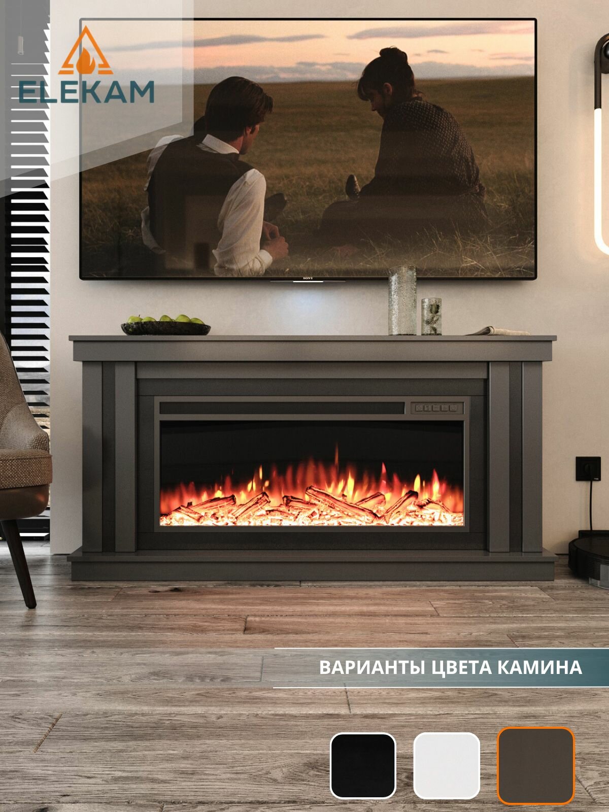 Купить Камин электрический напольный ELEKAM NEO 38 с очагом и порталом, с пультом, обогревом и имитацией огня (Электрокамин) с доставкой по всей России.