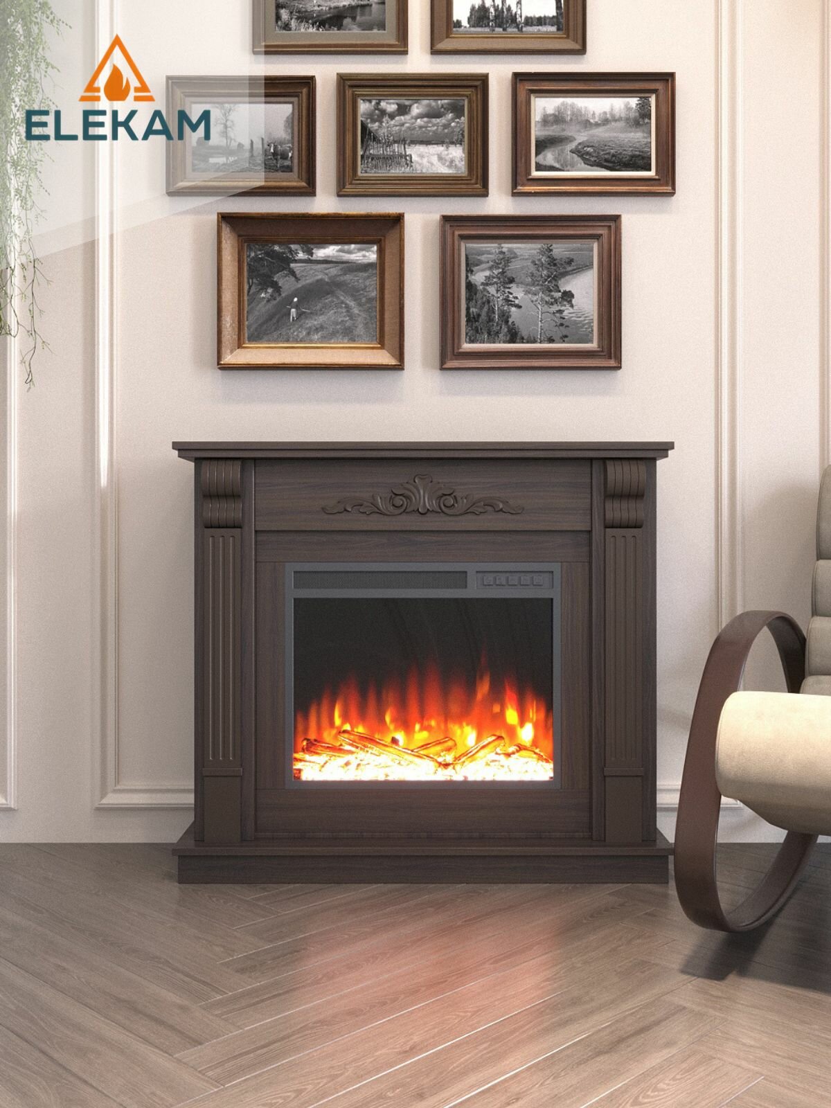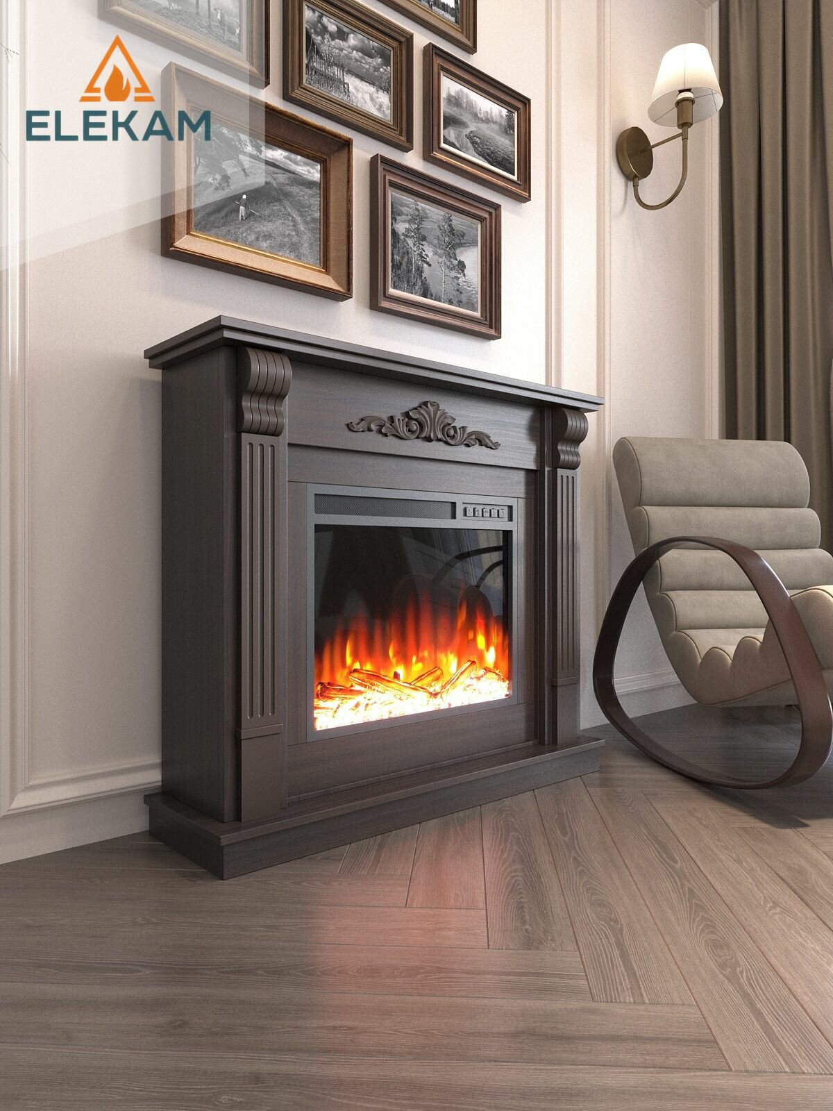 Купить Камин электрический напольный ELEKAM Viola 23 с порталом и очагом, с обогревом и имитацией огня с доставкой по всей России.