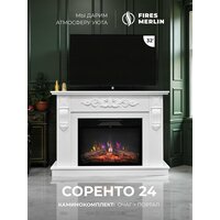 Купить Камин электрический напольный Fires Merlin Соренто 24 белый c очагом, эффект звука потрескивания дров, живого пламени с доставкой по всей России.