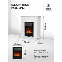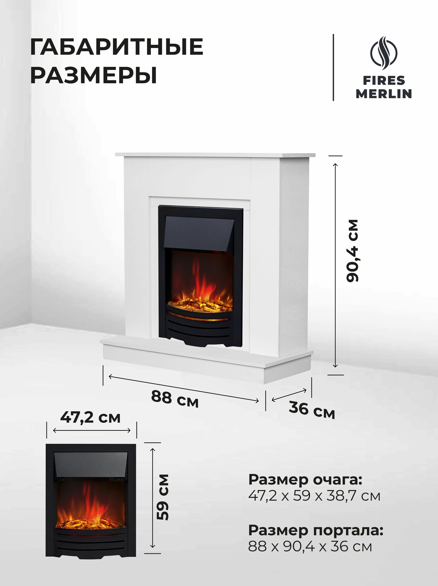 Камин электрический напольный Флора белый с очагом Оскар, с обогревом, имитация пламени и звука