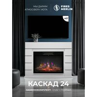 Купить Камин электрический напольный Каскад 24 белый c очагом, с обогревом, эффект звука потрескивания дров и живого пламени с доставкой по всей России.