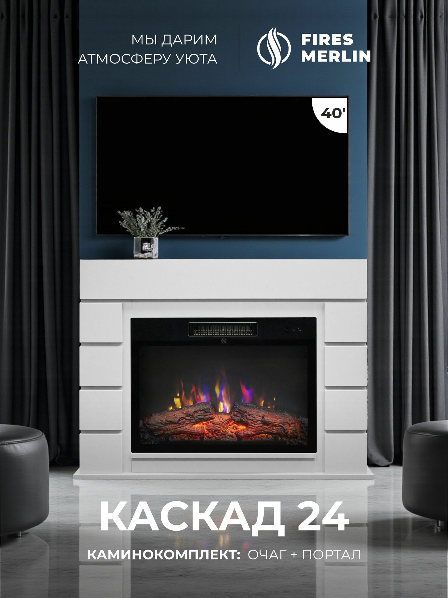 Камин электрический напольный Каскад 24 белый c очагом, с обогревом, эффект звука потрескивания дров и живого пламени: сравнение цен, характеристики, фото, актуальное наличие и цены.