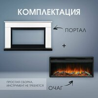 Камин электрический напольный Royal Flame BERGEN SFT белый c очагом Vision 42 LOG LED, с эффектом реального пламени, звуком потрескивания дров и обогревом 1,5 кВт