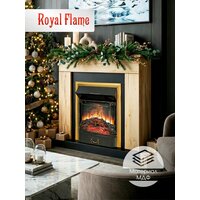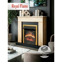 Камин электрический напольный Royal Flame BERGEN STD дуб галифакс c очагом Majestic FX Brass, с эффектом реального пламени, звуком потрескивания дров и обогревом 2 кВт