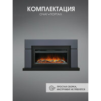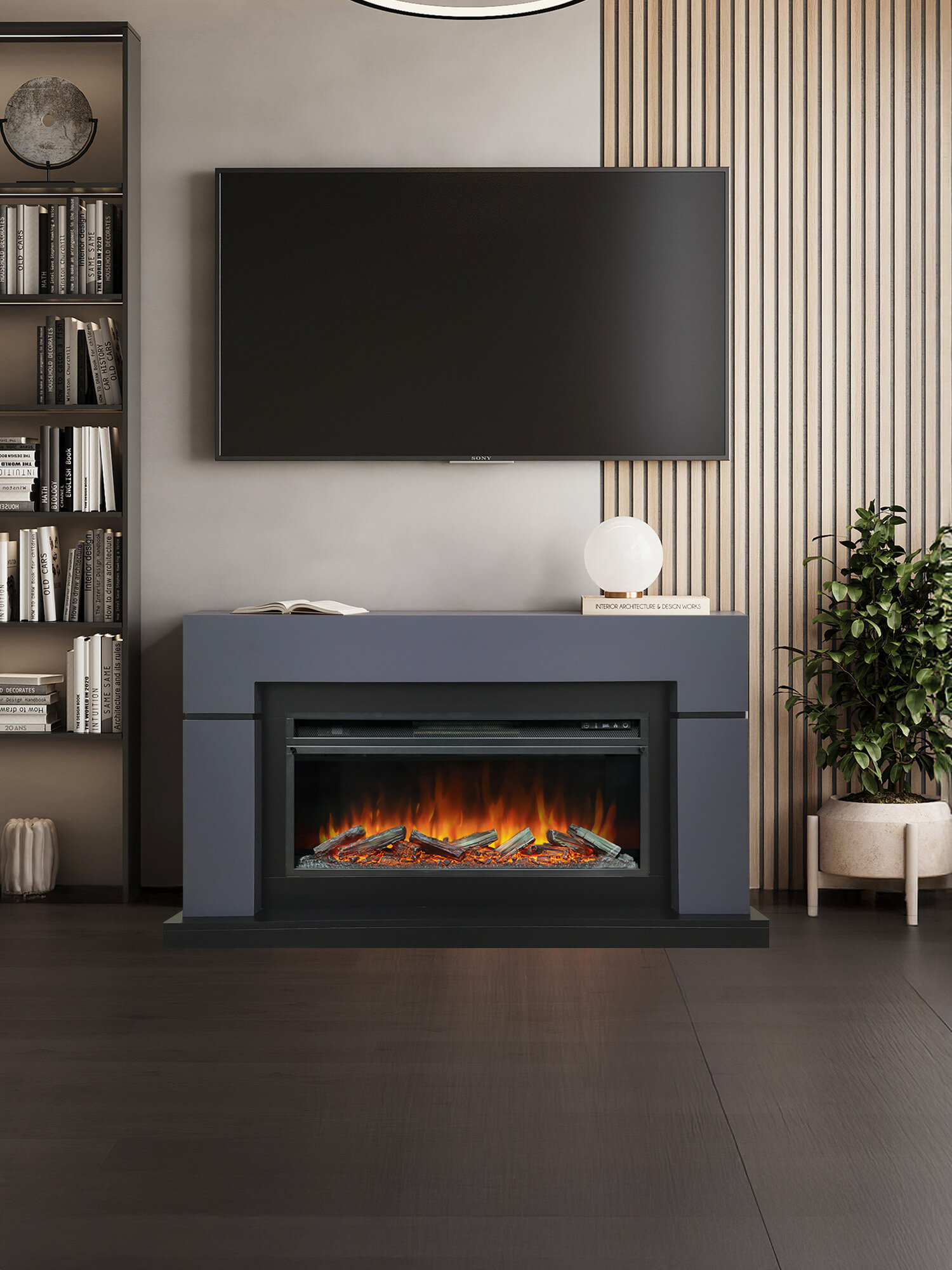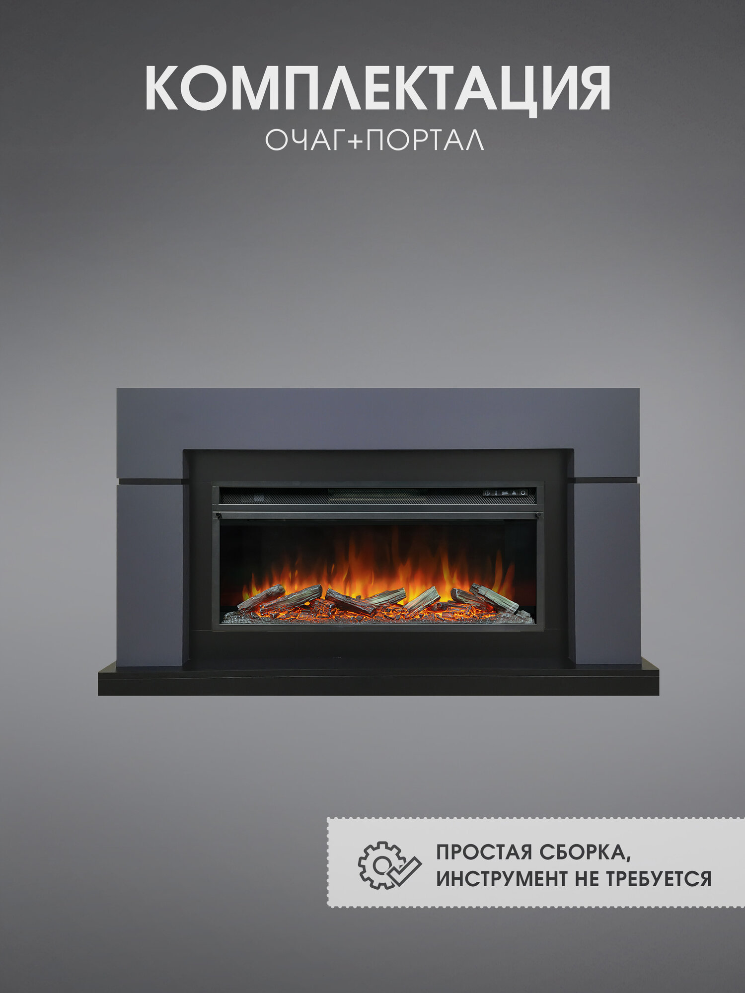Камин электрический напольный Royal Flame LINDOS 42 серый графит с очагом Vision 42 LOG, с дровами, звуком и эффектом реального пламени