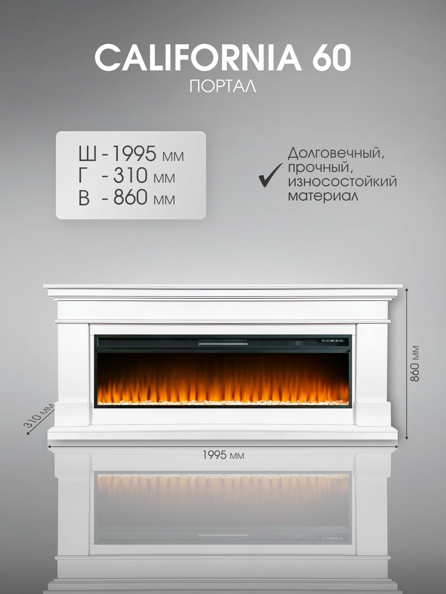 Камин электрический напольный Royal Flame модель CALIFORNIA 60 белый из МДФ, с очагом Vision 60 LED с кристаллами, обогревом и эффектом реального пламени: сравнение цен, характеристики, фото, актуальное наличие и цены.