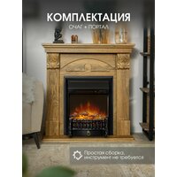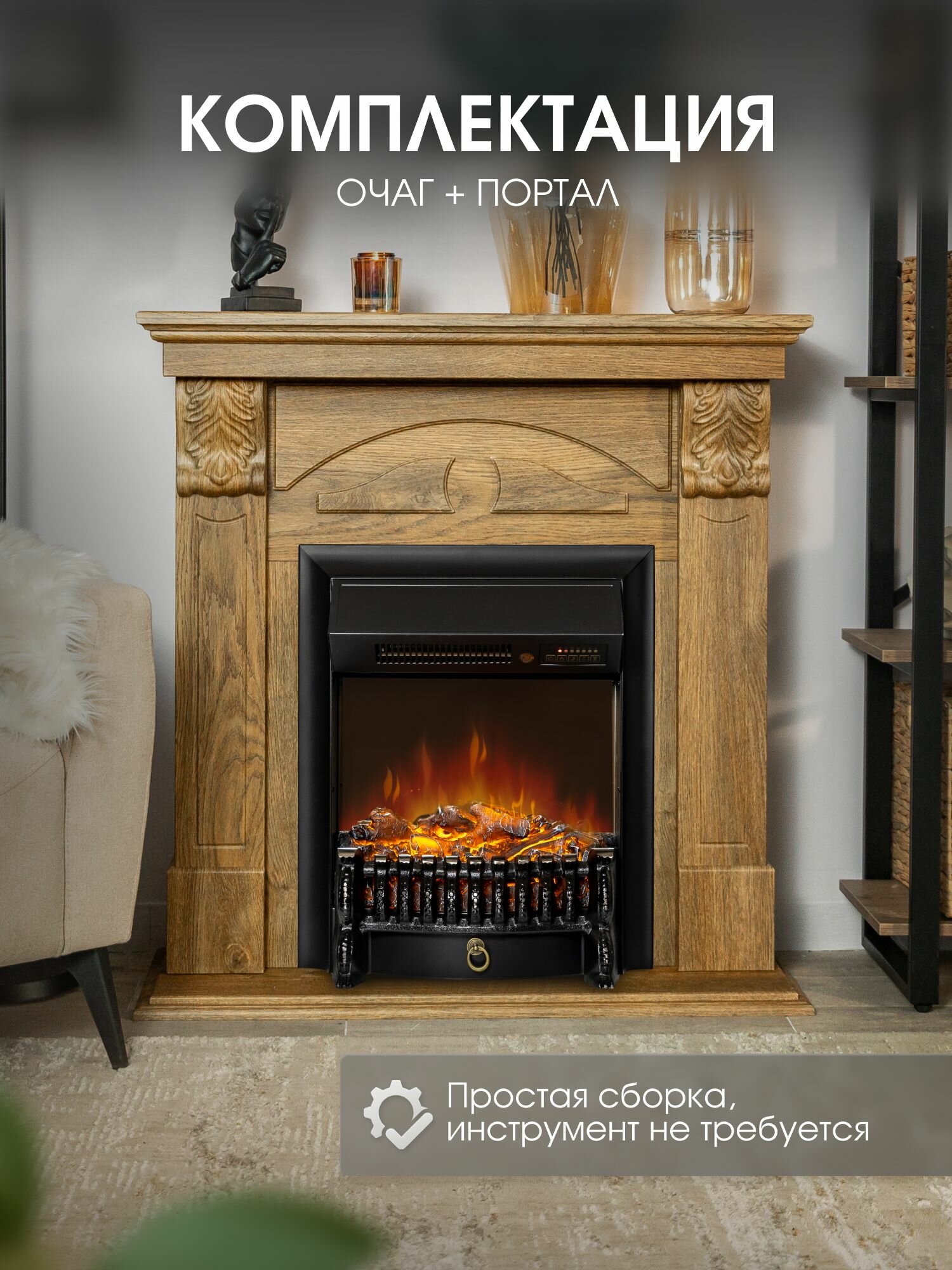 Камин электрический напольный Royal Flame модель Dublin дуб рустик натуральный с очагом Fobos M Black RC, звуковой эффект потрескивания, обогрев 1.5 кВт