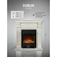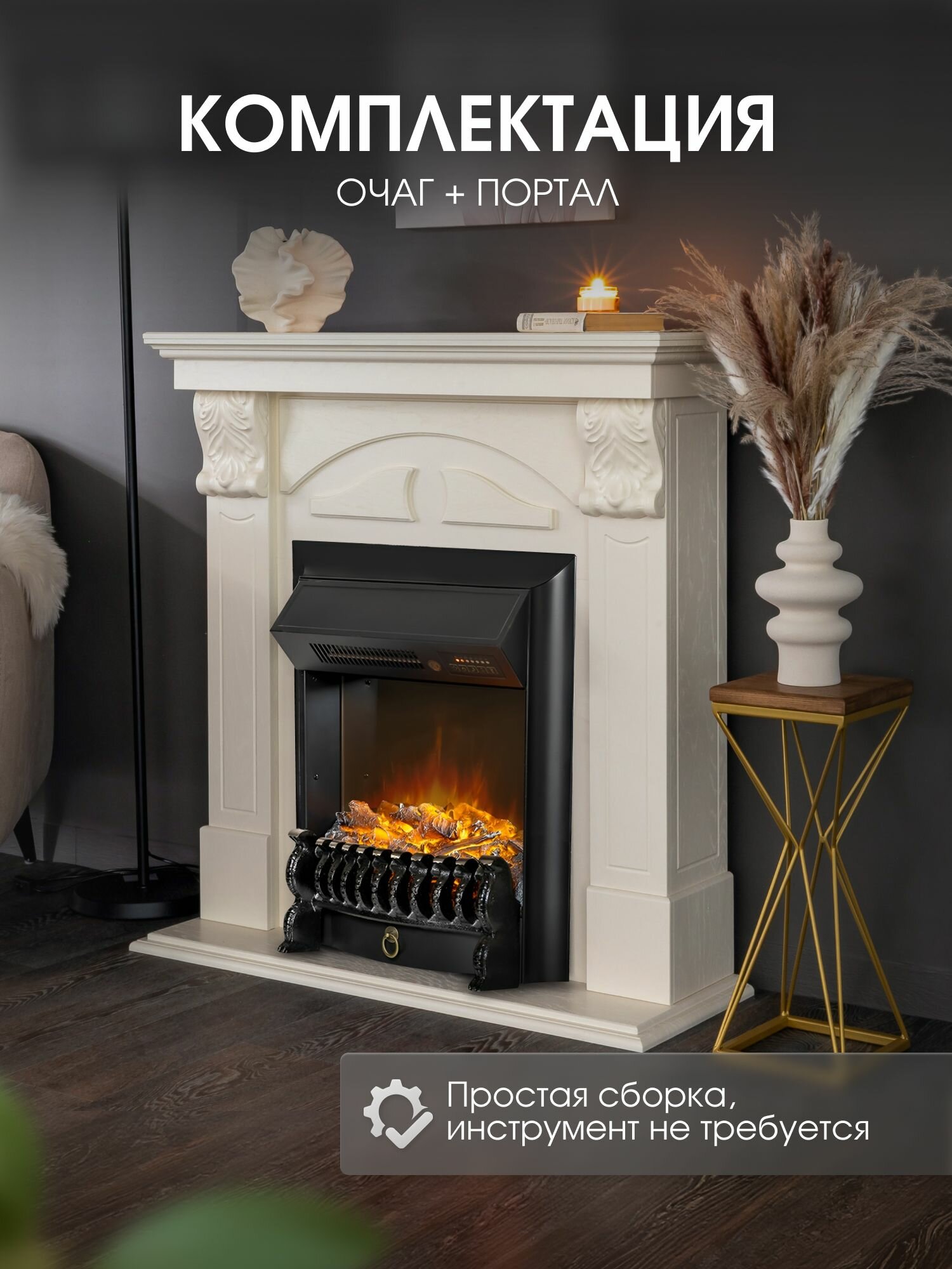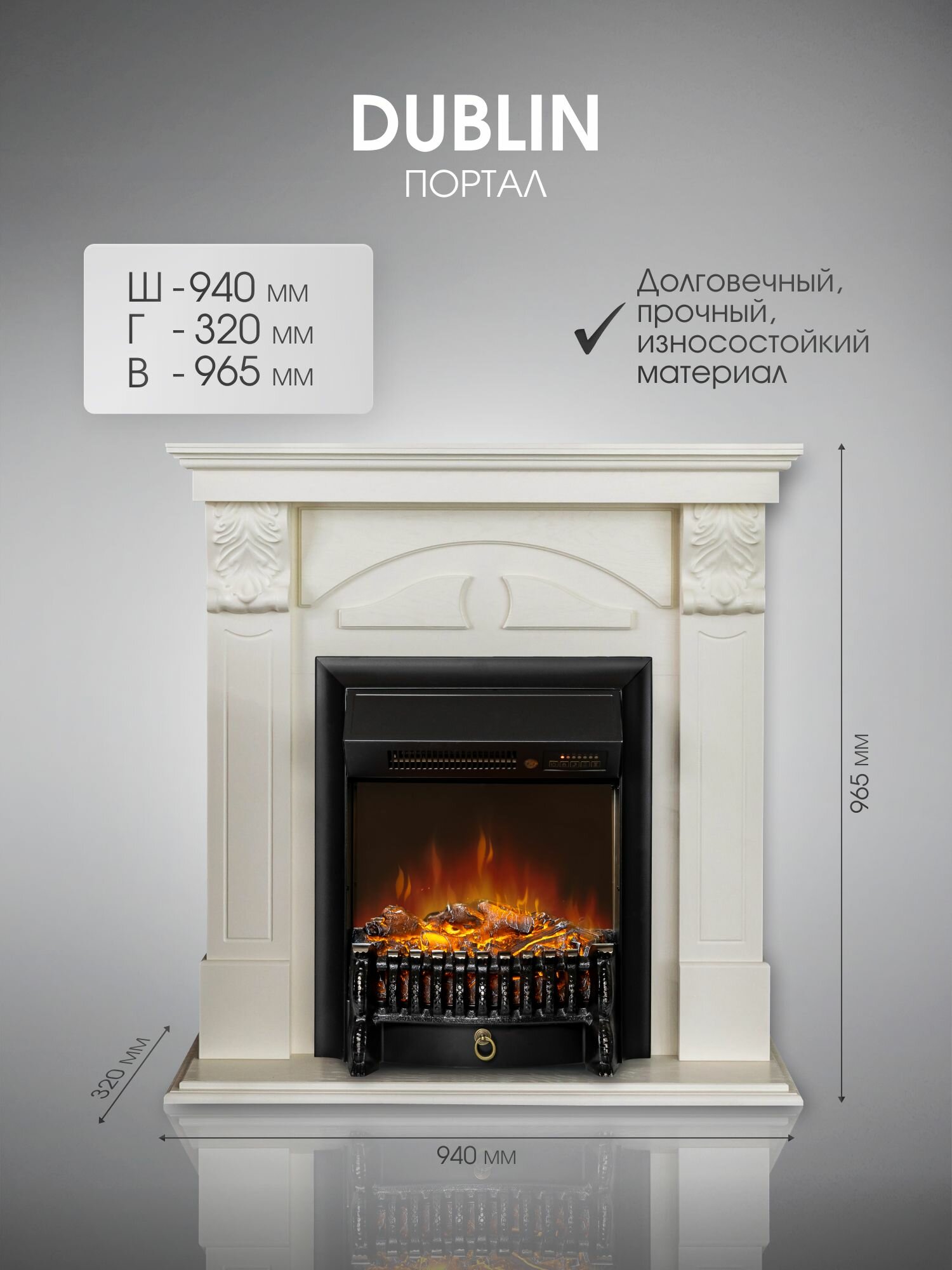 Камин электрический напольный Royal Flame модель Dublin рустик слоновая кость с очагом Fobos M Black RC, звуковой эффект потрескивания, обогрев 1.5 кВт