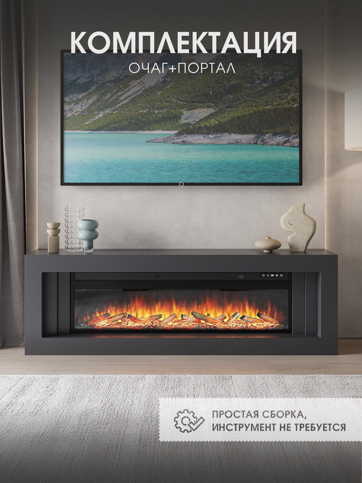 Купить Камин электрический напольный Royal Flame модель Line с очагом Vision 60 LOG, портал из МДФ, в цвете серый графит, очаг с дровами, обогревом и эффектом потрескивания дров с доставкой по всей России. Камин электрический напольный Royal Flame модель Line с очагом Vision 60 LOG, портал из МДФ, в цвете серый графит, очаг с дровами, обогревом и эффектом потрескивания дров: сравнение цен, характеристики, фото, актуальное наличие и цены.
