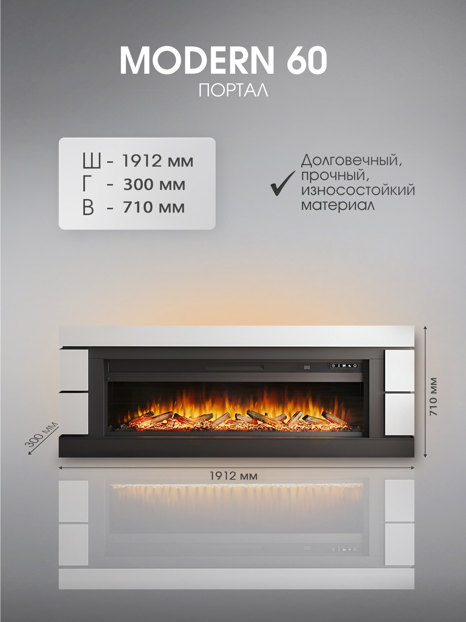 Камин электрический напольный Royal Flame модель MODERN 60 белый из МДФ, с очагом Vision 60 LOG с дровами, обогревом и эффектом реального пламен: сравнение цен, характеристики, фото, актуальное наличие и цены.