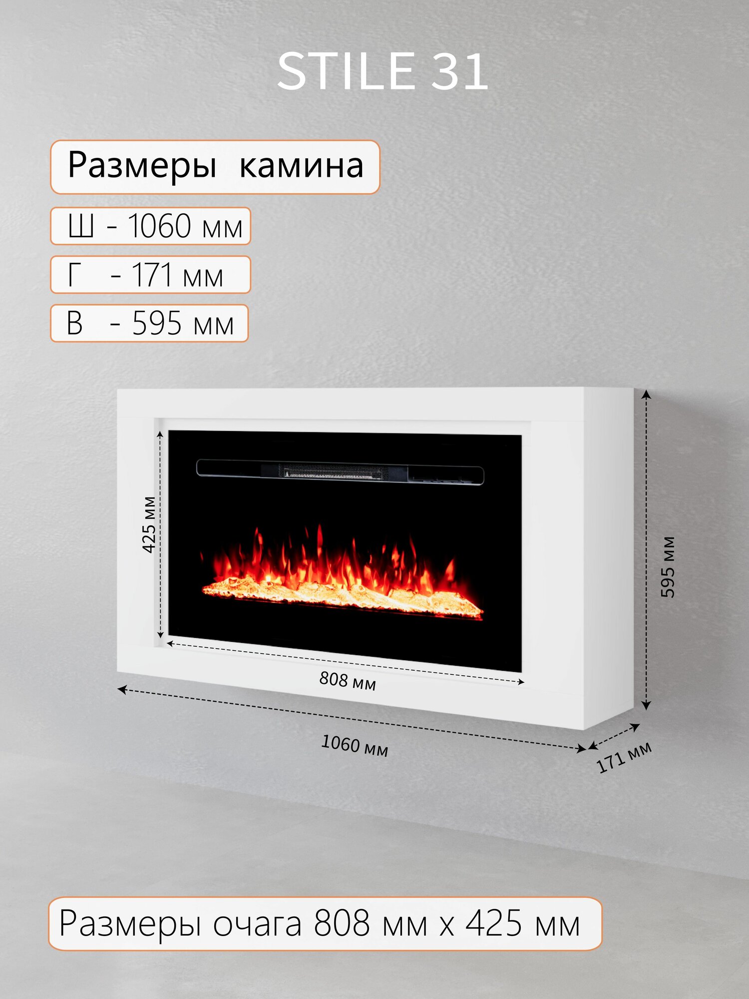Купить Камин электрический настенный ELEKAM Style 31 с порталом и очагом, с обогревом и имитацией огня с доставкой по всей России.