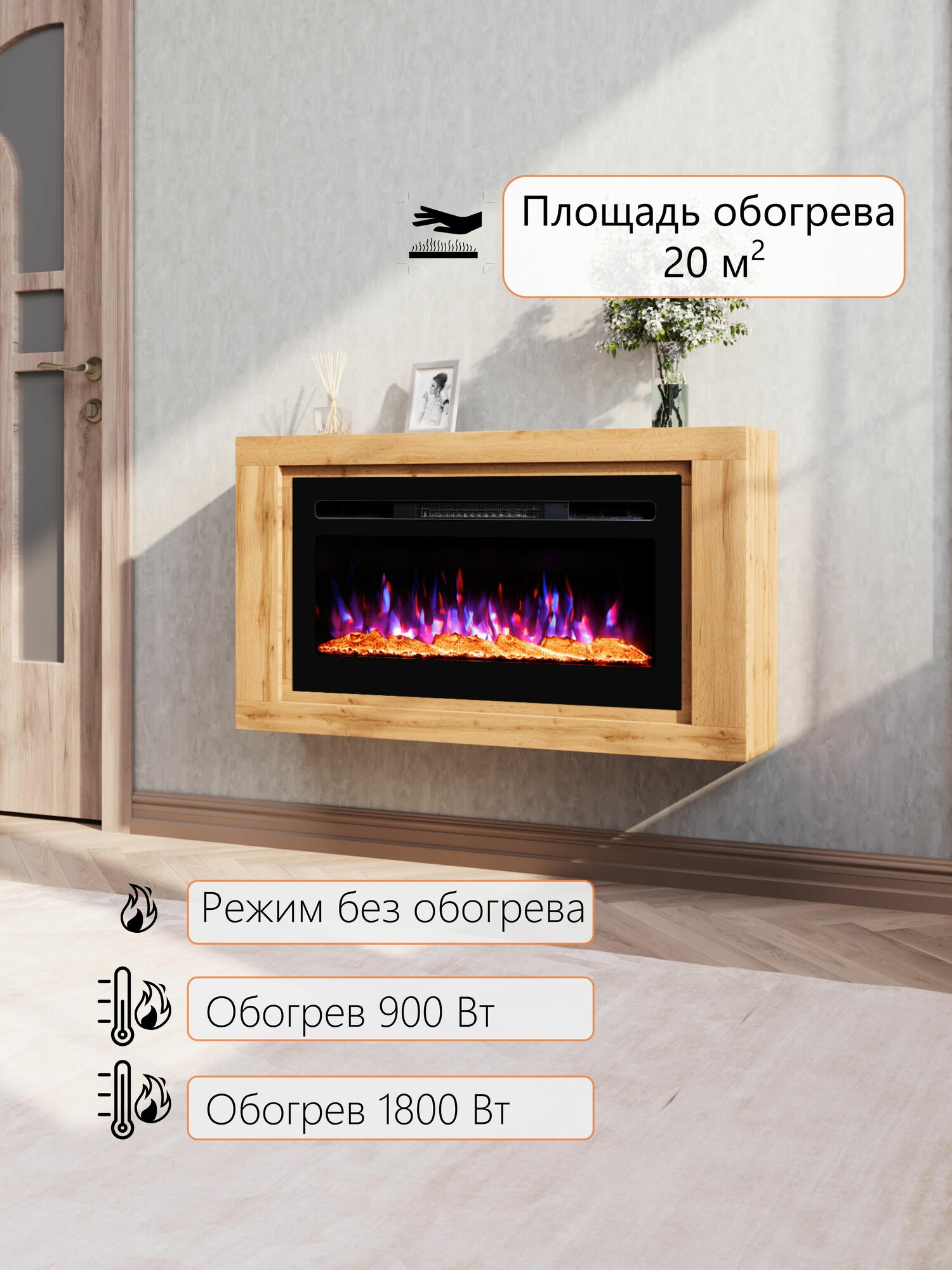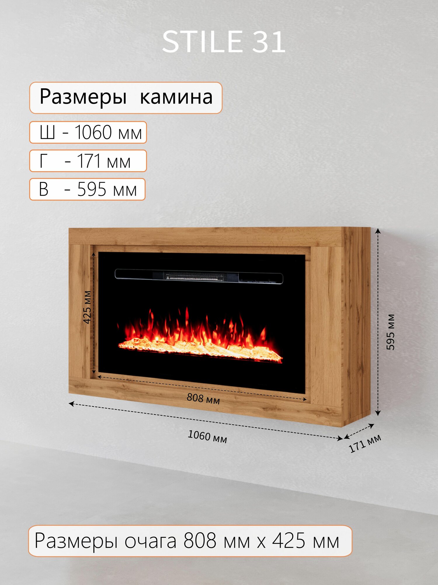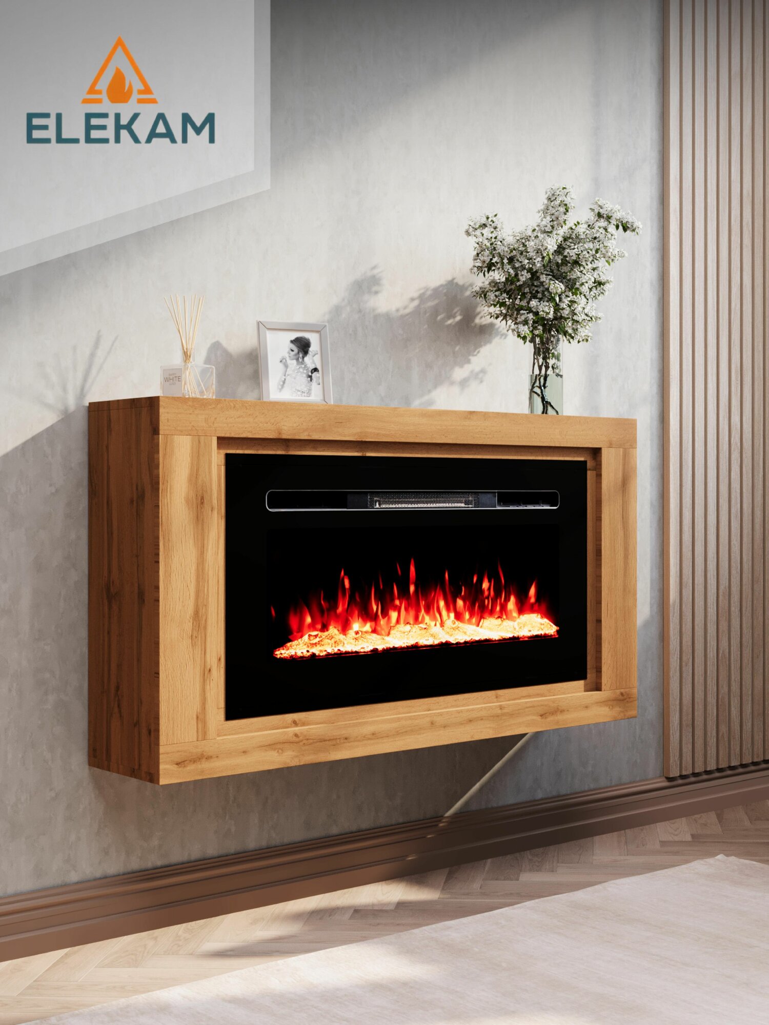 Камин электрический настенный ELEKAM Style 31 с порталом и очагом, с обогревом и имитацией огня