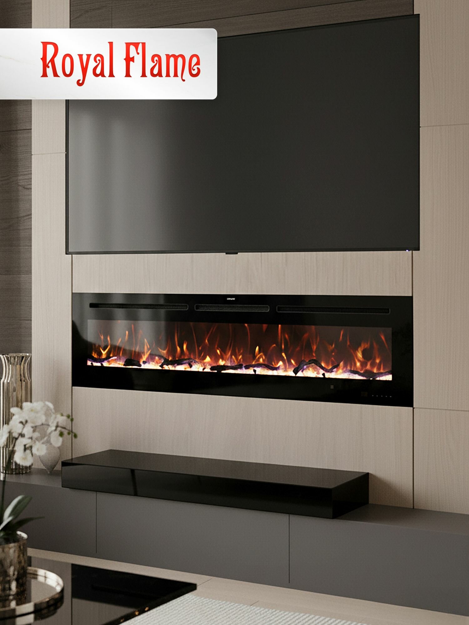 Линейные электрические камины серии Galaxy, выполненные в современном дизайне, подходят для монтажа на стену.
