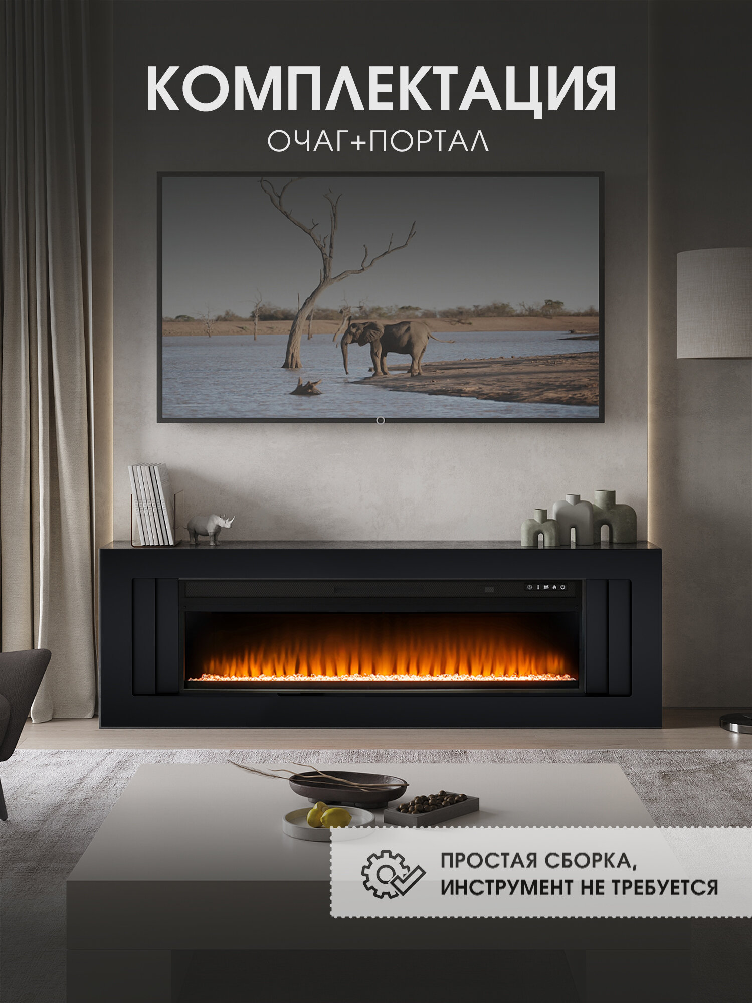 Камин электрический Royal Flame Line с очагом Vision 60 LED, портал МДФ в черном цвете, очаг с кристаллами, звуком, эффектом пламени и обогревом.: сравнение цен, характеристики, фото, актуальное наличие и цены.