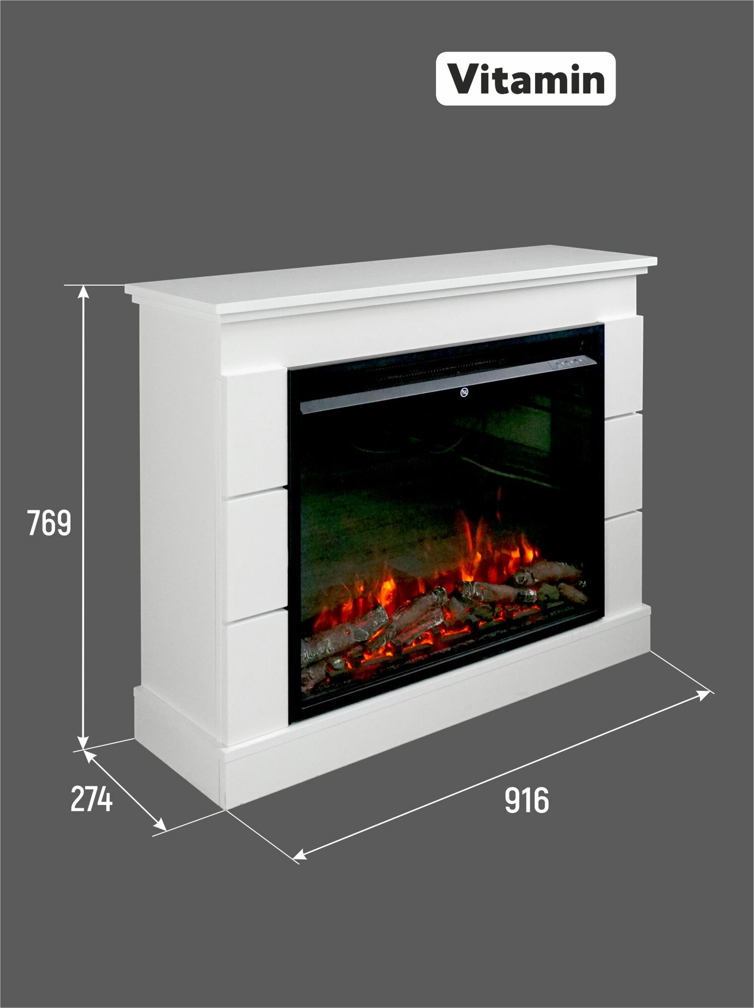 Камин электрический с белым порталом VITAMIN. Цвет «Белый», с пультом ДУ, два режима обогрева, подсветка: сравнение цен, характеристики, фото, актуальное наличие и цены.