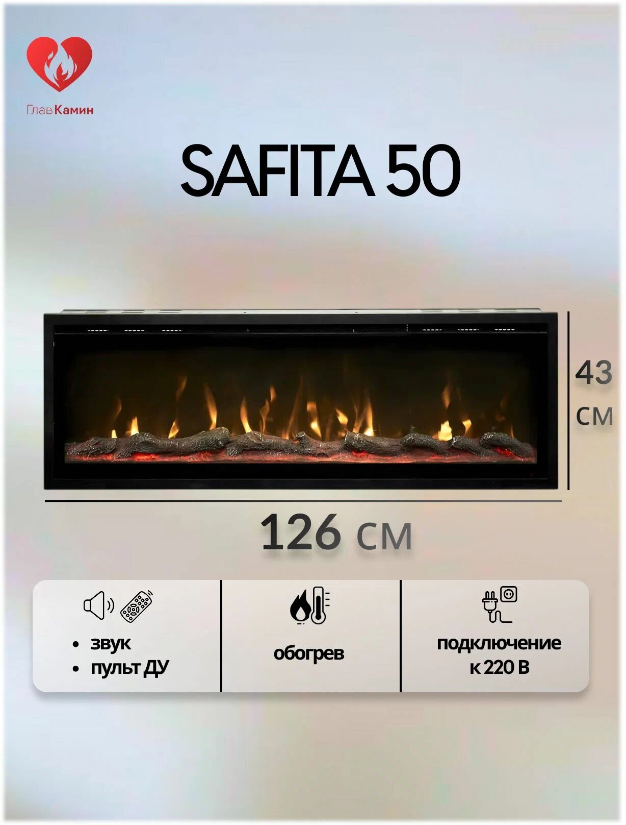Купить Камин электрический SAFITA 50 (супер-Led пламя, multi-color подсветка пламени и дров, пульт, звук, обогрев) Diamond 50, Saphir 50 с доставкой по всей России.