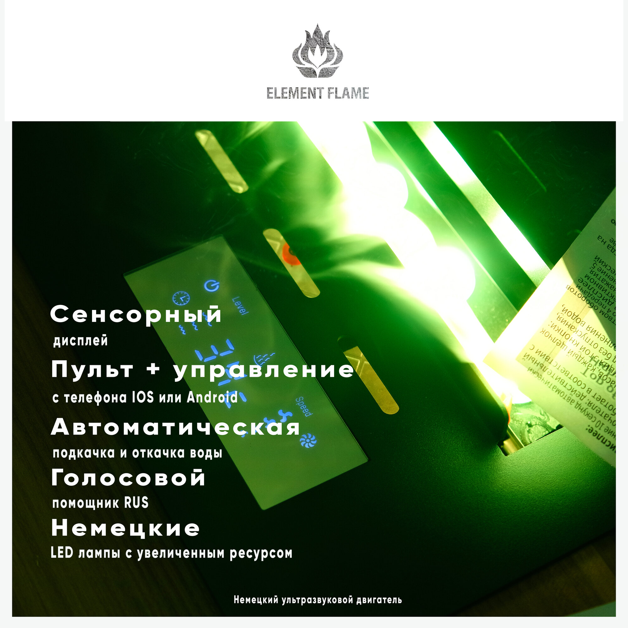 Важной особенностью парового камина Ritsenhof 3D-1500, "немецкой серии", является наличие звукового эффекта потрескивания дров. Обращаем Ваше внимание, что паровой камин обладает встроенным голосовым помощником, на русском языке, который отслеживает показатели работы камина, озвучивает рекомендации и предупреждает о действиях, которые требуется совершить. Паровой электрокамин обладает возможностью управления на сенсорной панели, как с пульта дистанционного управления, так и возможностью управления со смартфона, с помощью приложения на телефоне(IOS или Android). Чтобы скачать приложение, удобно отсканировать QR-код с пульта управления и через Bluetooth установить конект между смартфоном и камином. Паровой камин Ritsenhof 3D-1500 Luftbefeuchte Platinum Series оснащен автоматическим насосом, который самостоятельно закачивает дистиллированную воду в бак электрокамина, также системой фильтрации, которая позволяет продлить работу камина, на долгие годы. Рекомендуется, использовать для воспроизводства пламени дистиллированную воду, что продлит работу камина, без дополнительных, ежегодных, сервисных затрат. Инновационная технология проекции пламени, с немецкими LED лампами c увеличенным ресурсом, создает максимально реалистичный эффект живого огня. Передовые технологии, которые используются при создании данной серии каминов, позволяют сохранить высокую надежность.