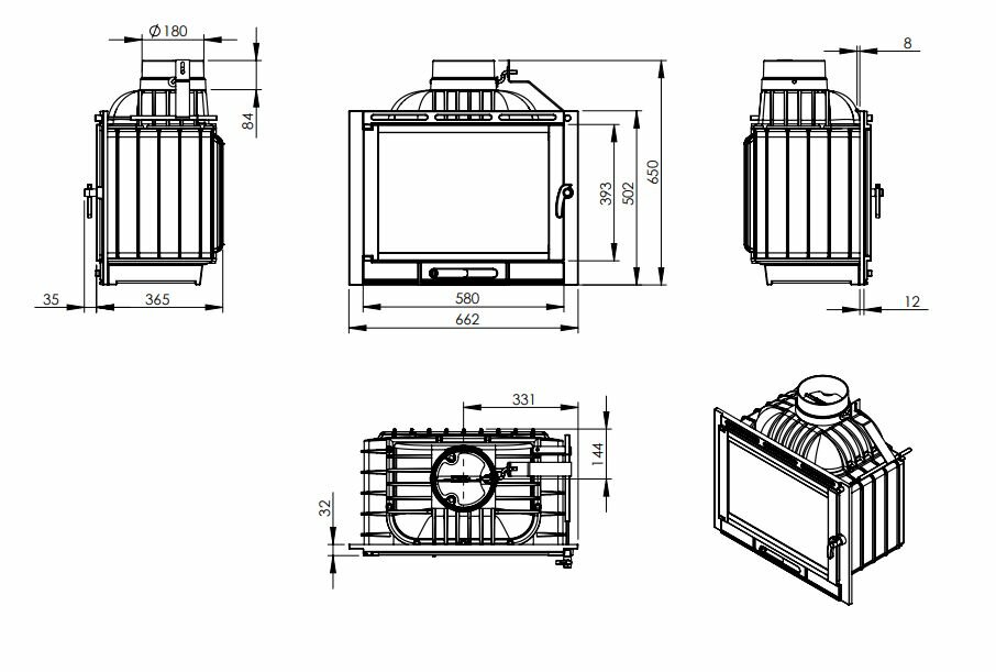 Корпус сделан полностью из чугуна. Это обеспечивает быструю теплоотдачу и долгий срок службы при соблюдении правил пользования каминной топкой.