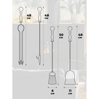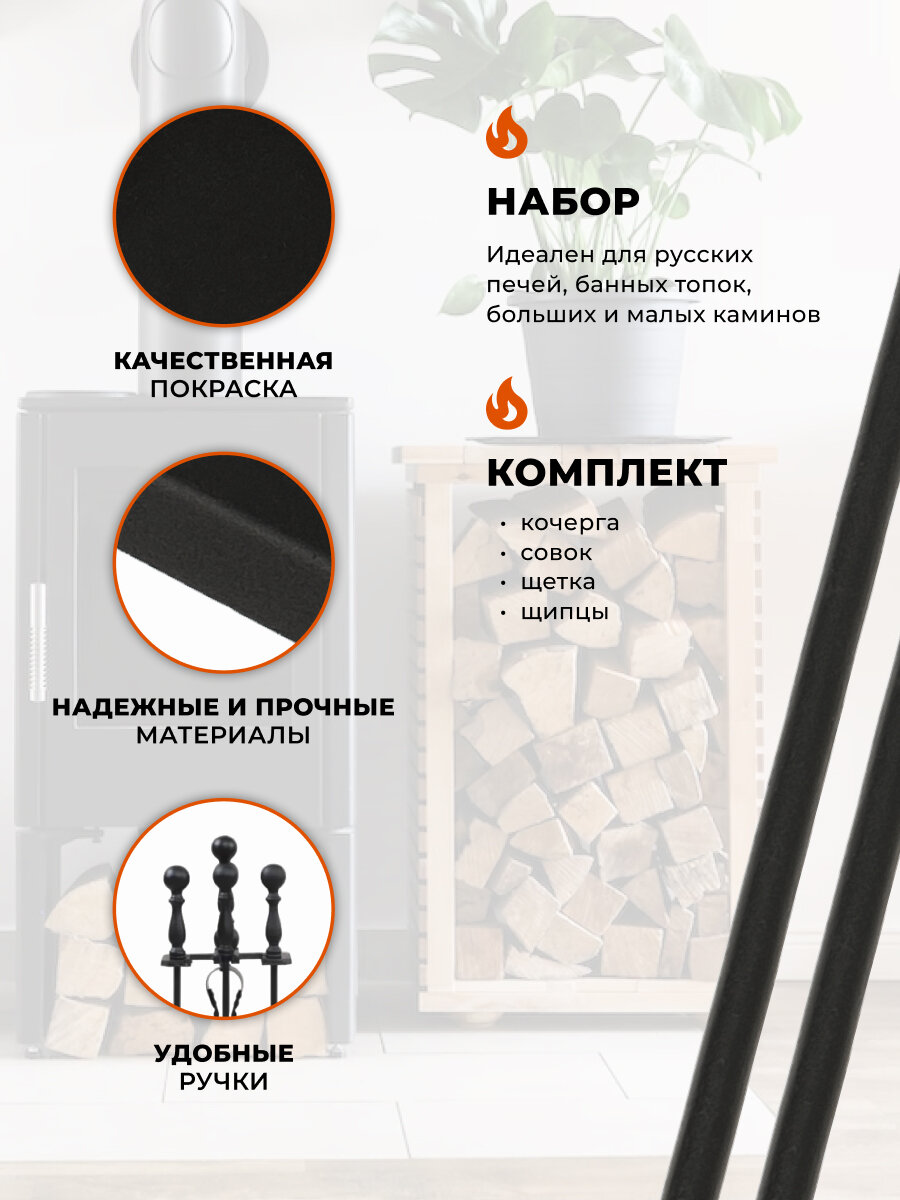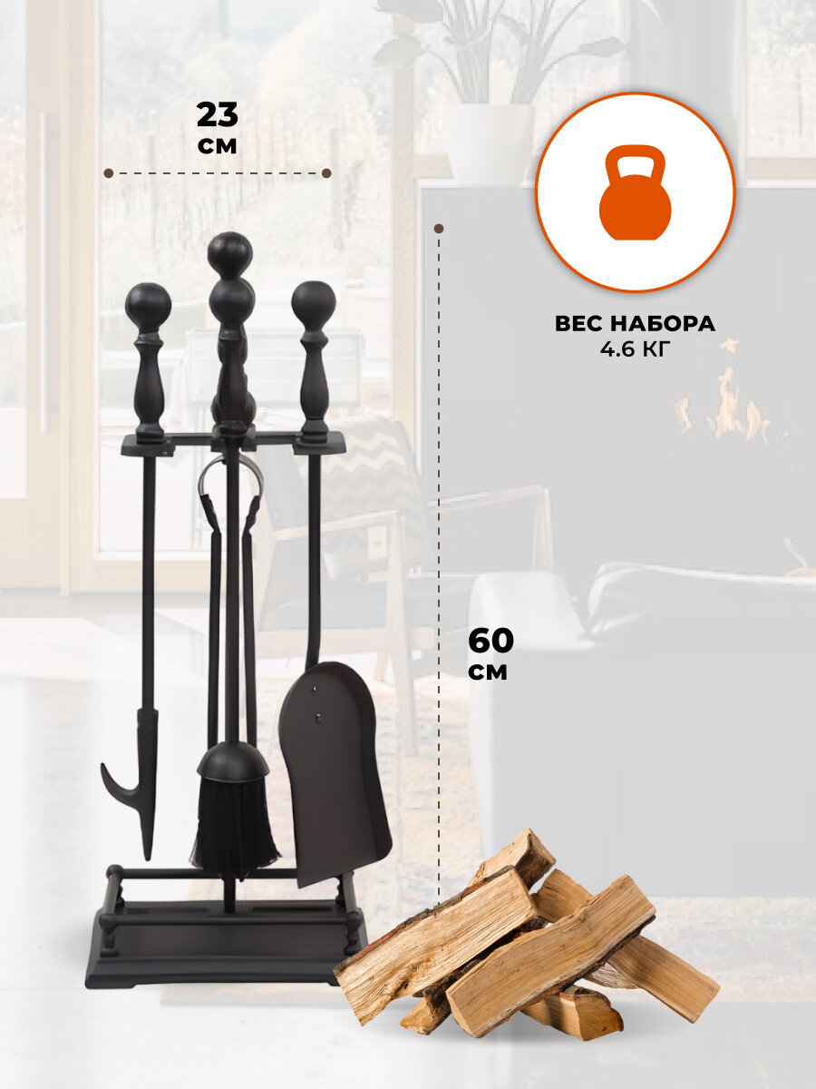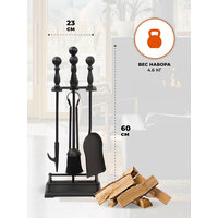 Габариты каминного набора в собранном виде: ширина: 23 см, глубина: 16 см, высота: 60 см, В набор входит: кочерга: 48 см, щетка: 50 см./6 см, совок: 48 см./11 см, щипцы: 48 см. Каминный набор - это стильный аксессуар предназначен для ухода за очагом. Он отлично вписывается в любой интерьер и удобен в использовании. Наборы для камина R-sauna отличаются высоким качеством и надежностью. Данная модель изготовлена из высококачественной стали. В набор для чистки камина входят: щетка и совок, для того чтобы убирать мелкий мусор и золу, щипцы для того, чтобы подбирать упавшие угли и возвращать их в камин, кочерга, для того чтобы поправлять поленья, а также подставка для хранения всех этих принадлежностей для камина. Каминный набор / Набор для камина / Набор для печи / Набор для мангала/ Печной набор