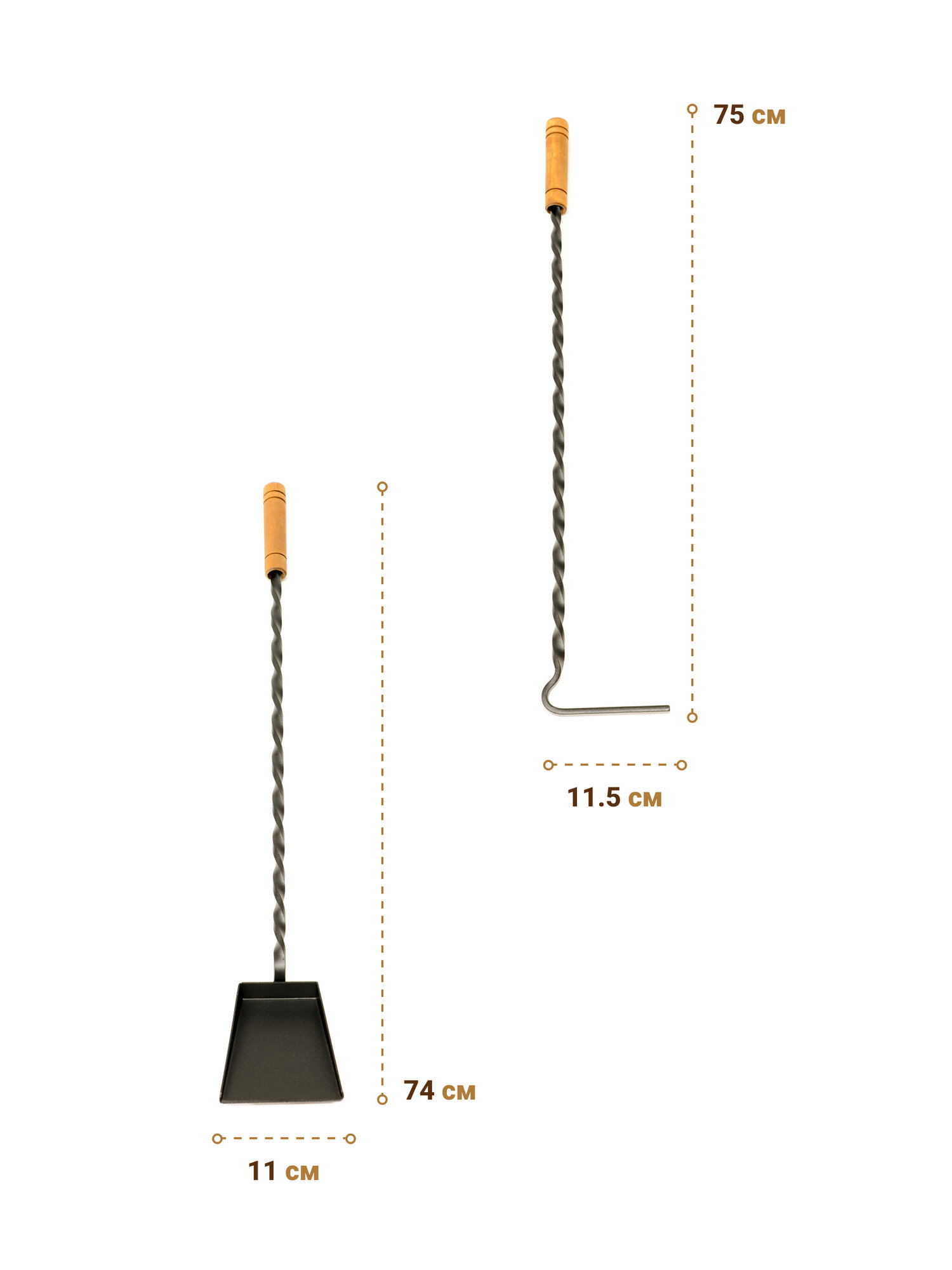 Габариты каминного набора в собранном виде: ширина: 17 см, глубина: 10 см, высота: 75 см. В набор входит: кочерга: 75 см./11,5 см, совок: 74 см./11 см. Настенный каминный набор "Настенный, 2 предмета". Набор для камина не только прекрасно впишется в интерьер, но и и практичен в использовании. Это важный атрибут загородного дома, бани или приусадебного участка. Станет вам помощником по обслуживанию очага и камина. Занимает немного места и станет дополнением к вашему интерьеру. Каминные наборы покупают не только обладатели каминов, работающих на дровах, но даже те, у кого дома стоят электрические камины. А все потому, что эти аксессуары как нельзя лучше способствуют созданию уютной атмосферы - убедитесь в этом на собственном опыте. В комплект каминного набора входит совок и кочерга , закрепленные на изящной вешалке. Ручка каждого аксессуара выполнена из ценных пород дерева. Каждый элемент окрашен порошковой краской, что способствует надежности и долговечности.