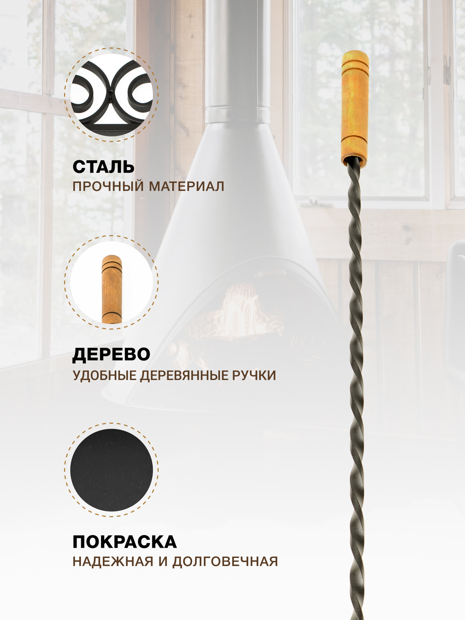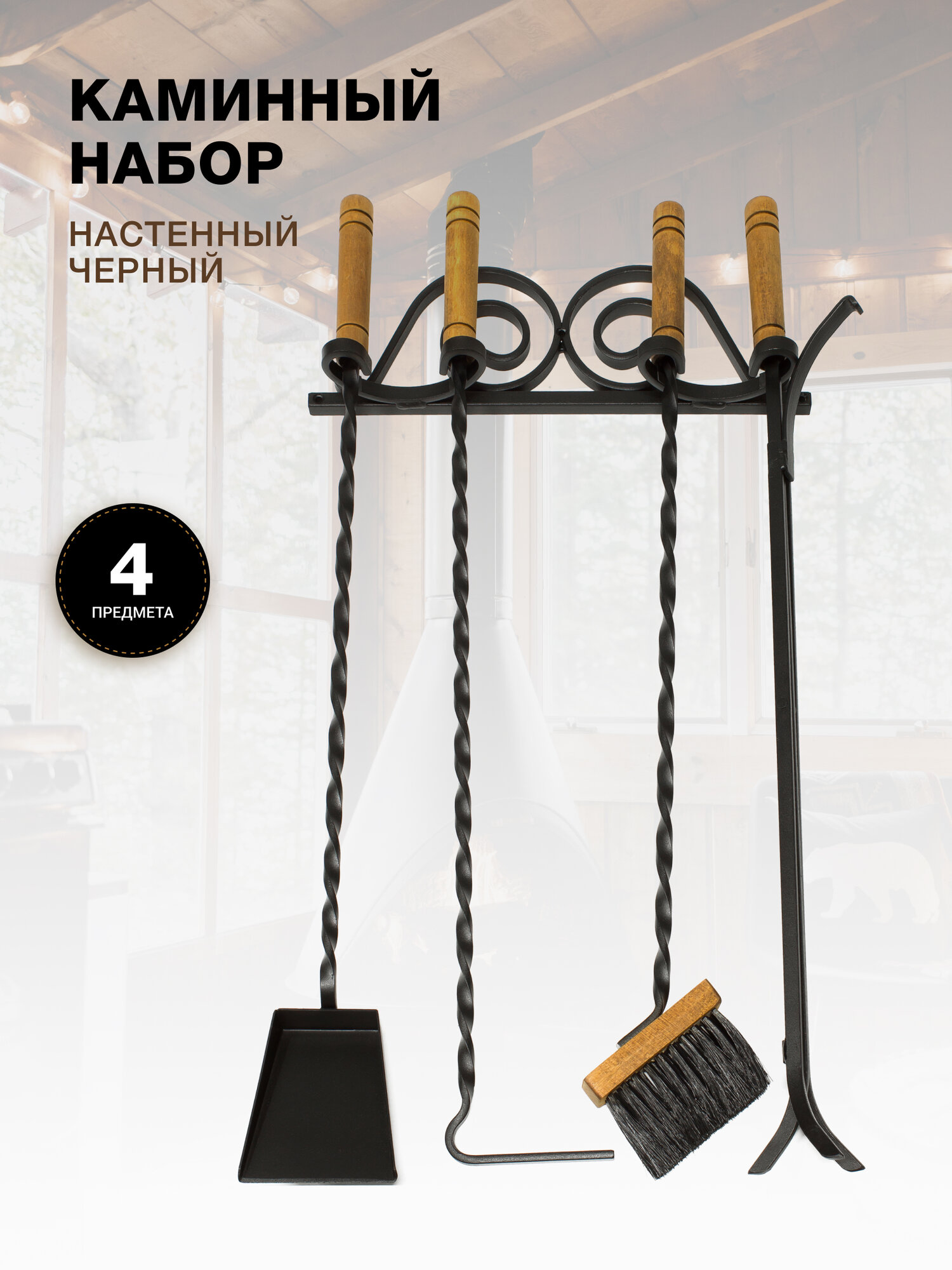 Каминный набор Настенный, 4 предмета, деревянные ручки, черный.: сравнение цен, характеристики, фото, актуальное наличие и цены.