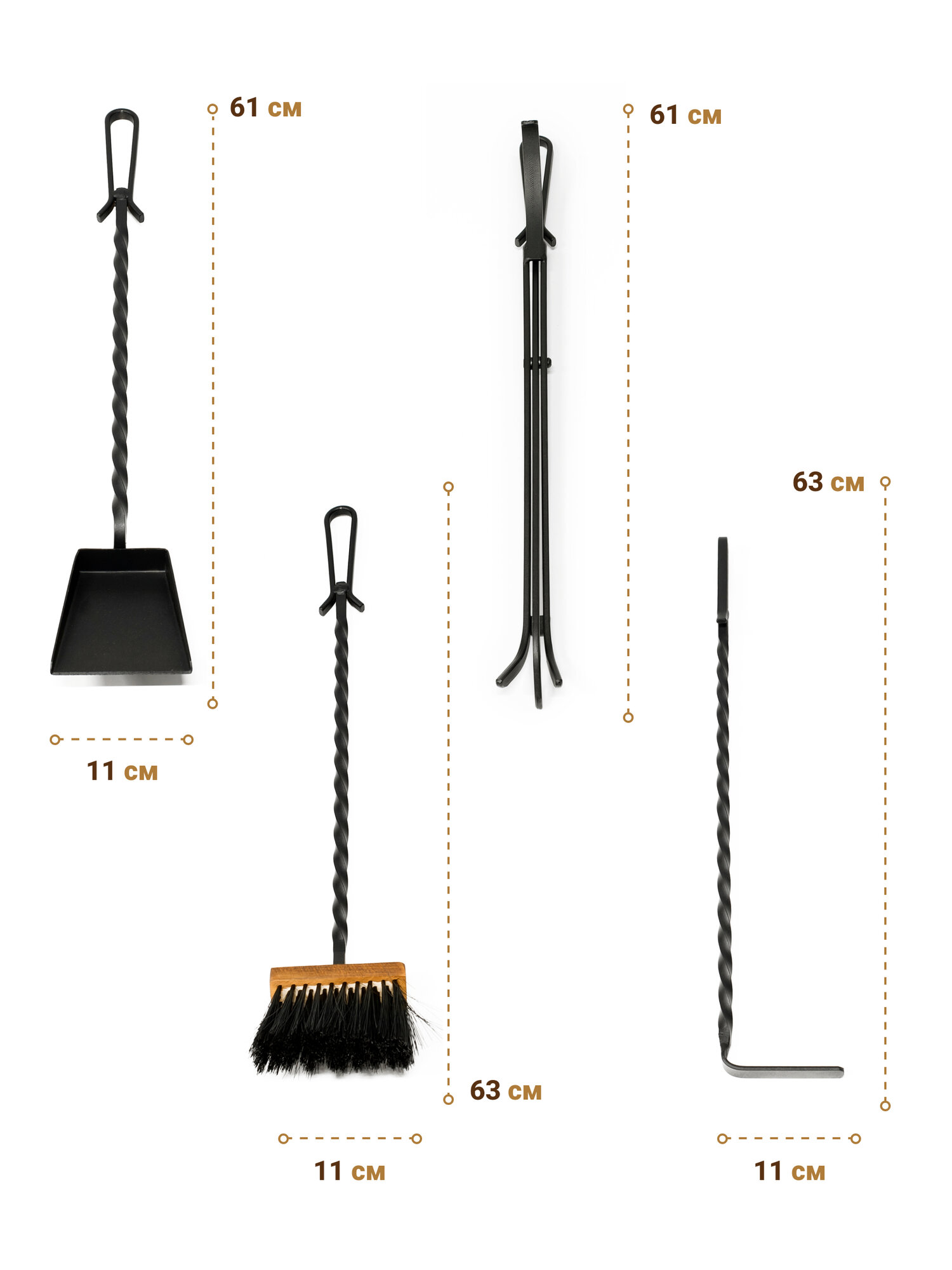 | Состав набора | кочерга, подставка, совок, щипцы, щётка |