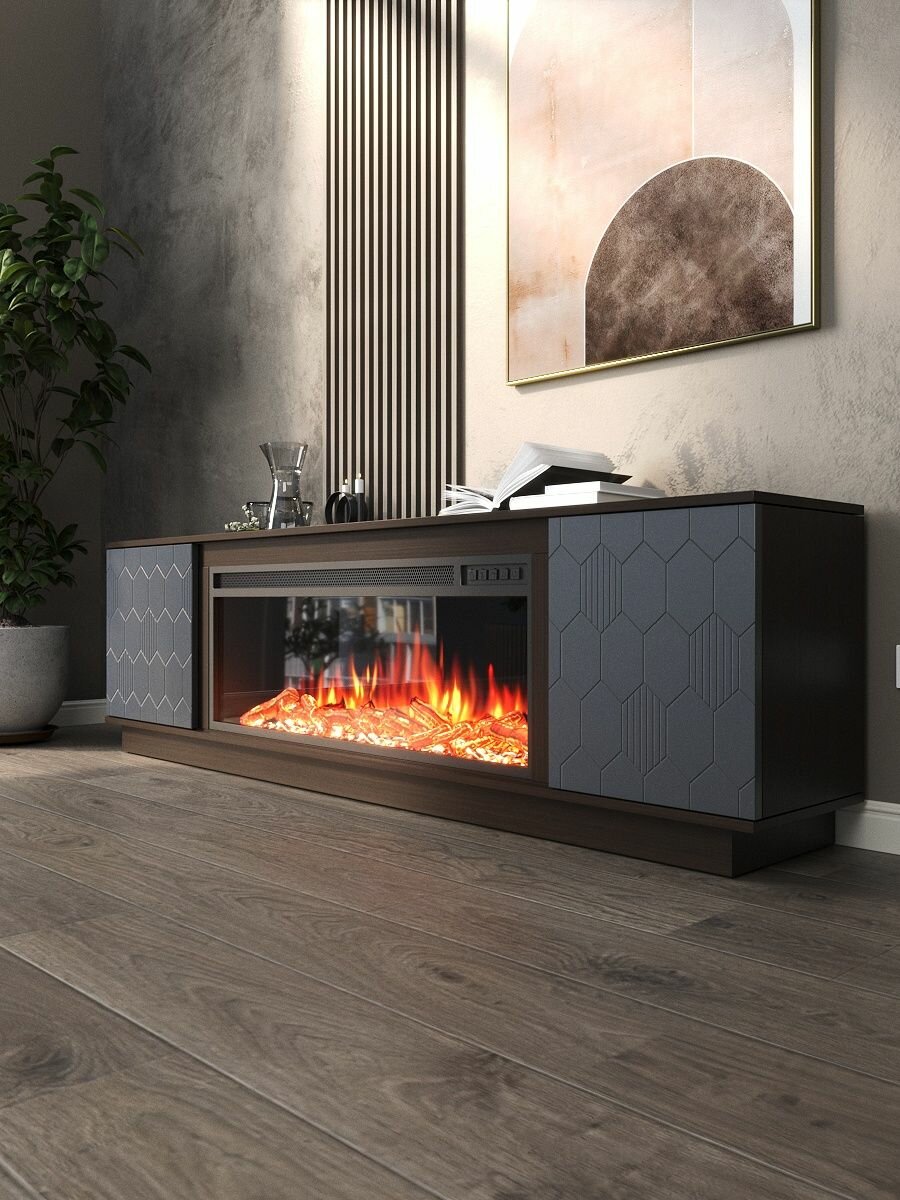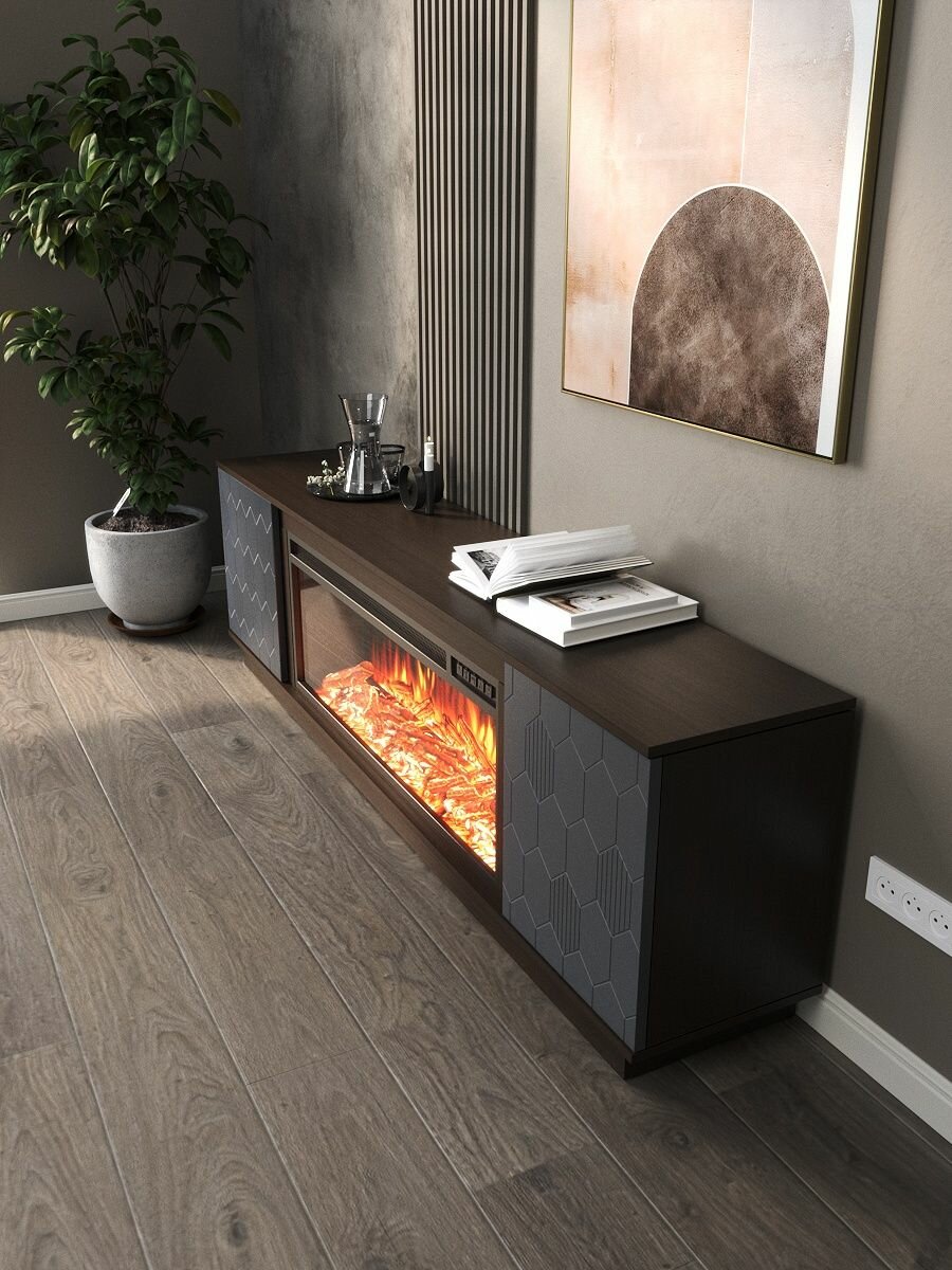 Камин электрический- тумба под ТВ (TV- тумба) с очагом Pulsar 23 в цвете дуб табачный фасад графит