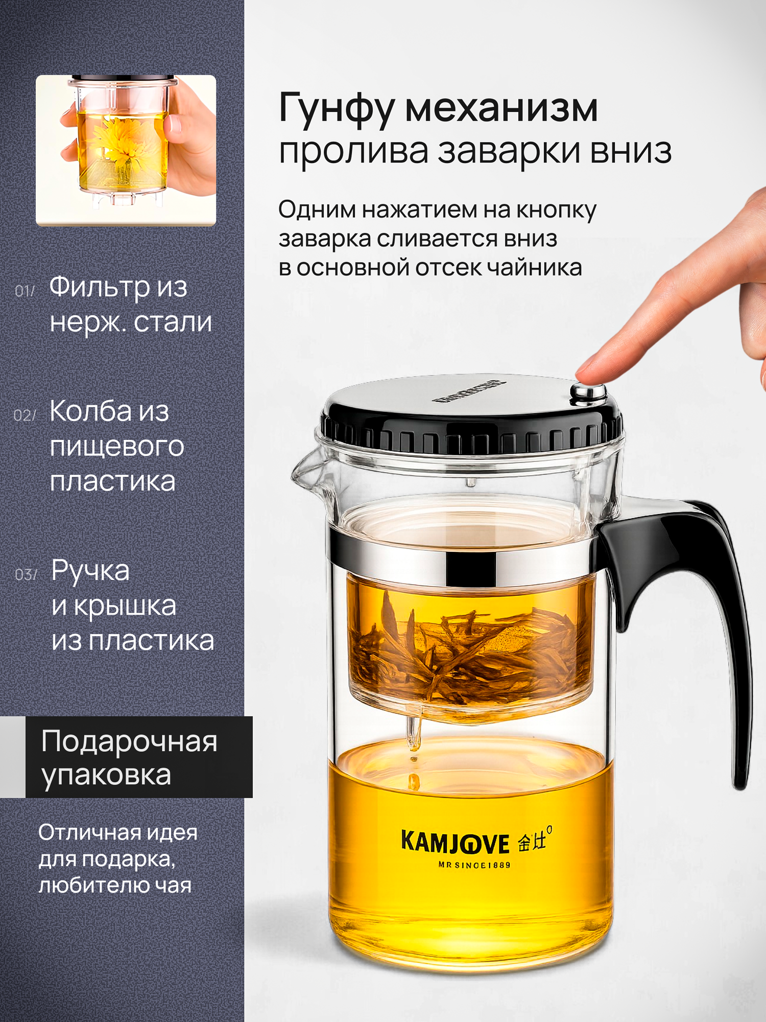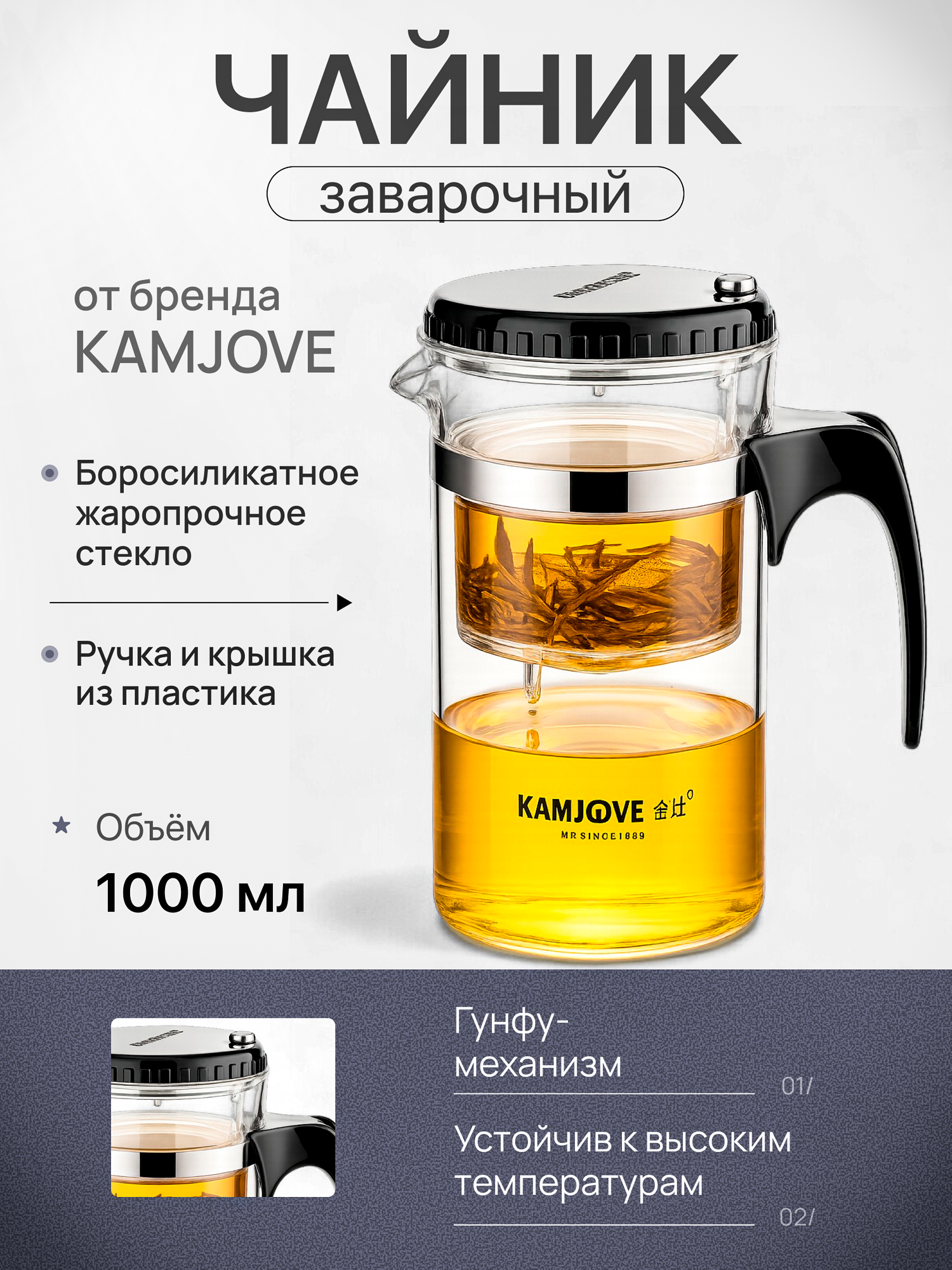 Чайник заварочный гунфу типот Kamjove TP-200 из боросиликатного стекла, 1000 мл: сравнение цен, характеристики, фото, актуальное наличие и цены.
