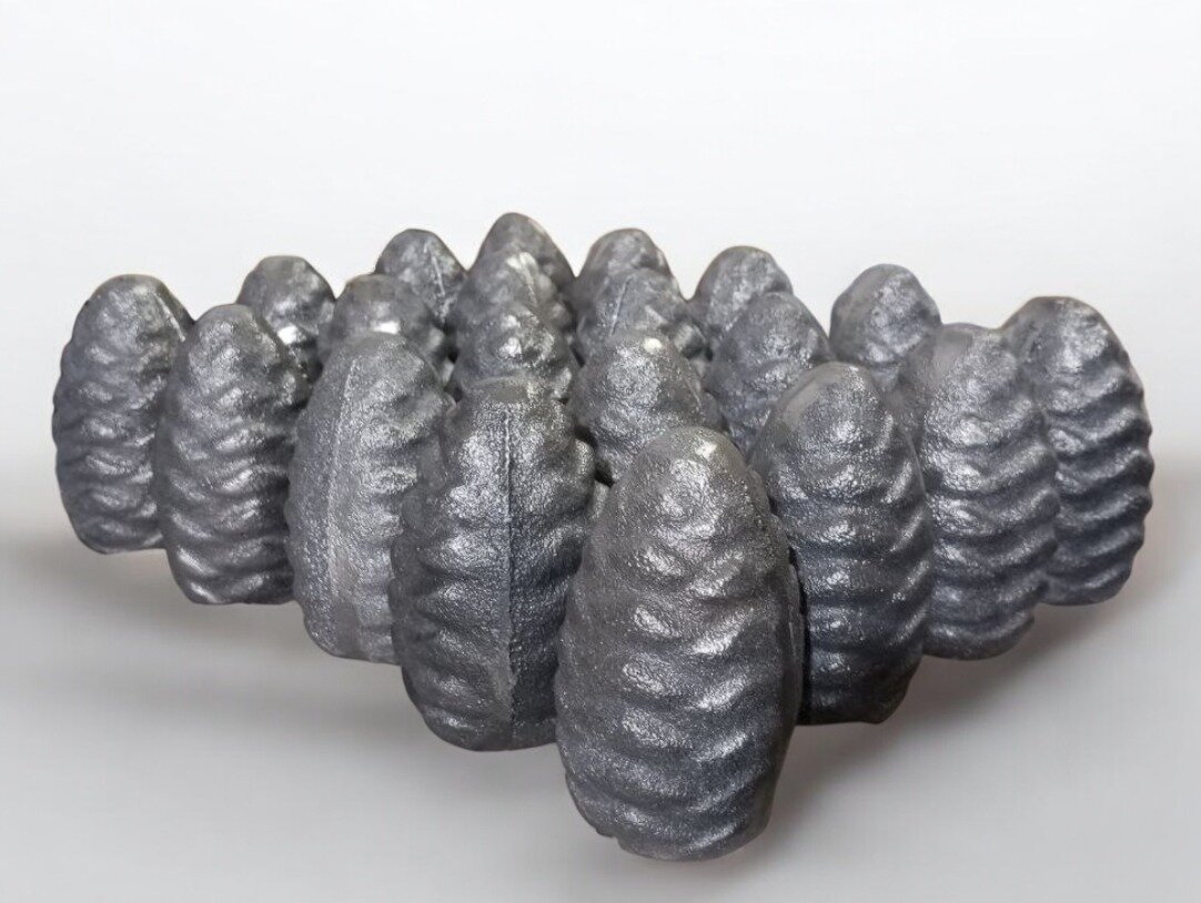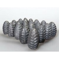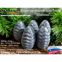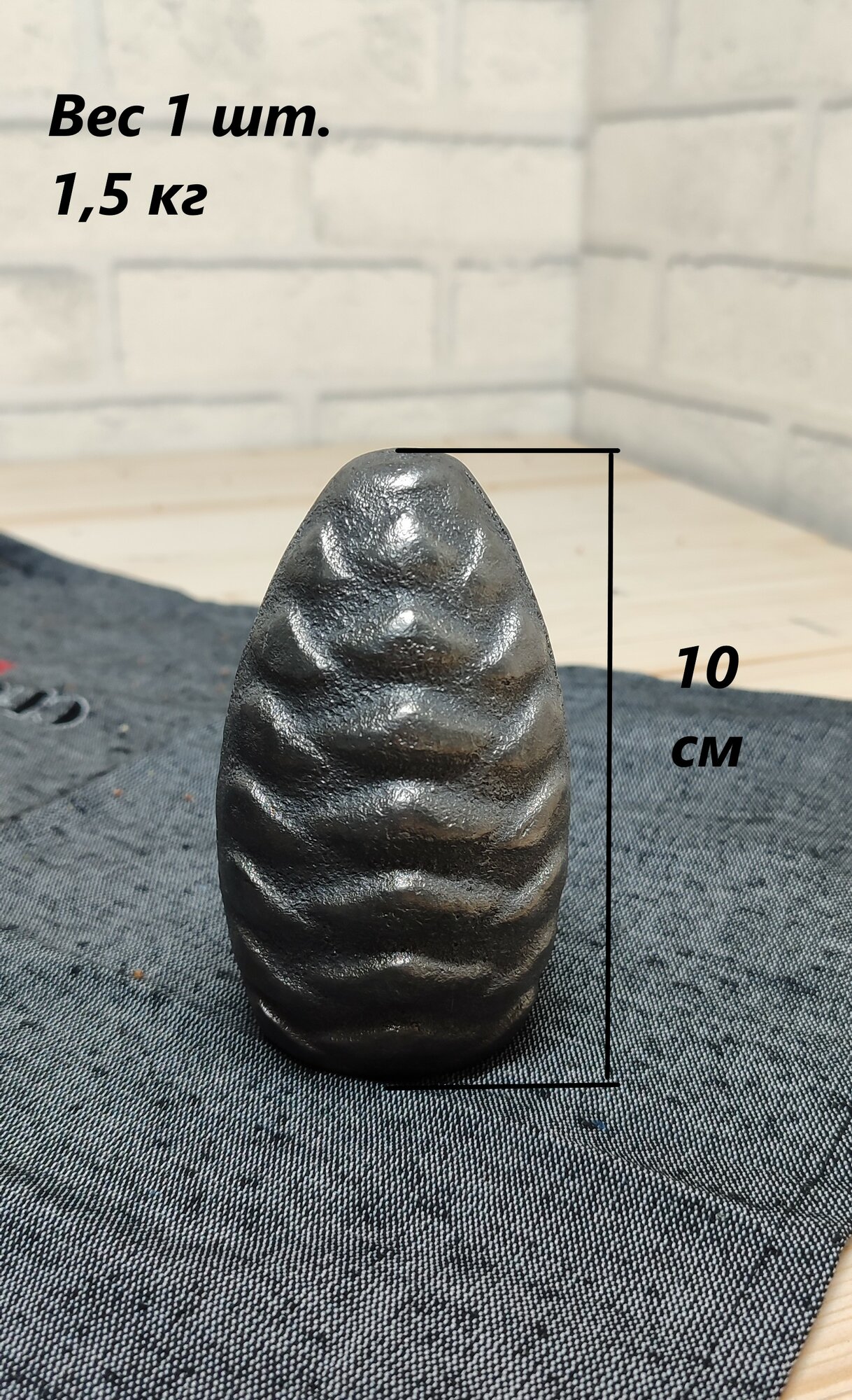 В наборе вы получаете 5 крупных шлифованных чугунных шишек весом 1,5 кг каждая. Размеры каждой шишки составляют ш.7*д.7*в.10.5 см.